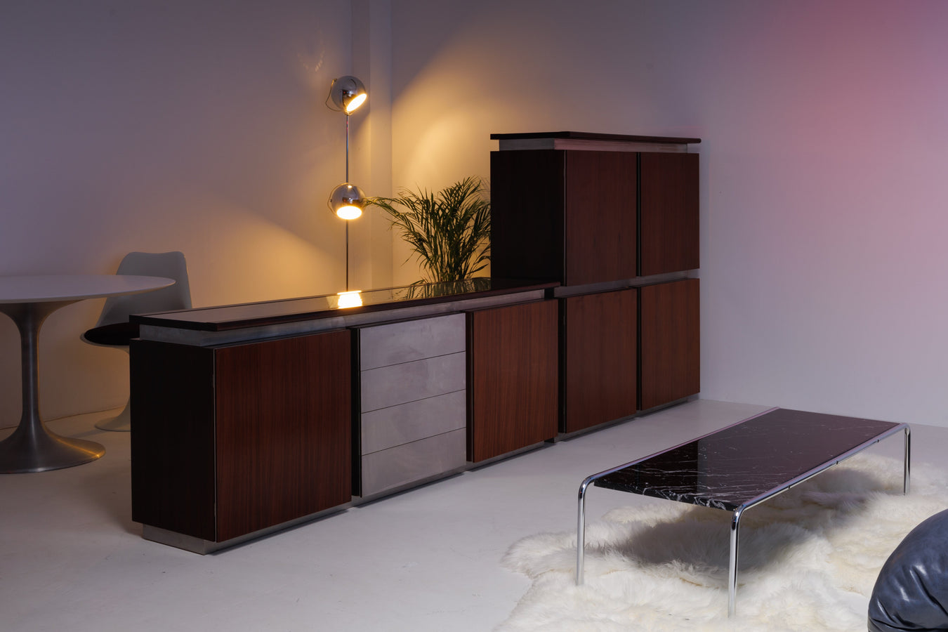 Vintage Mid Century-Modern Rosewood & Steel Parioli Sideboard by Giotto Stoppino for Acerbis, Italy, 1970s