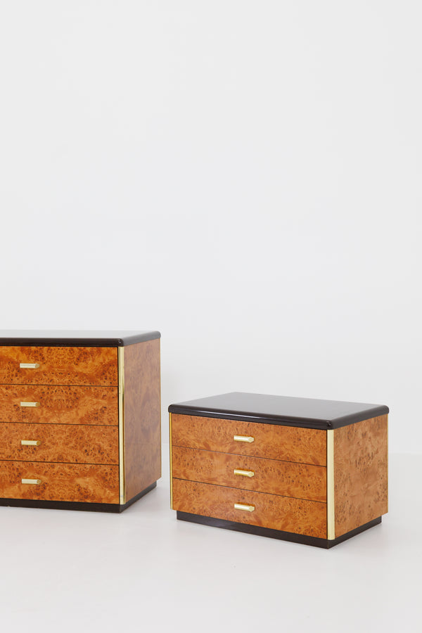 Set Sideboard and Drawers Made of Burlwood - Italy 1970s