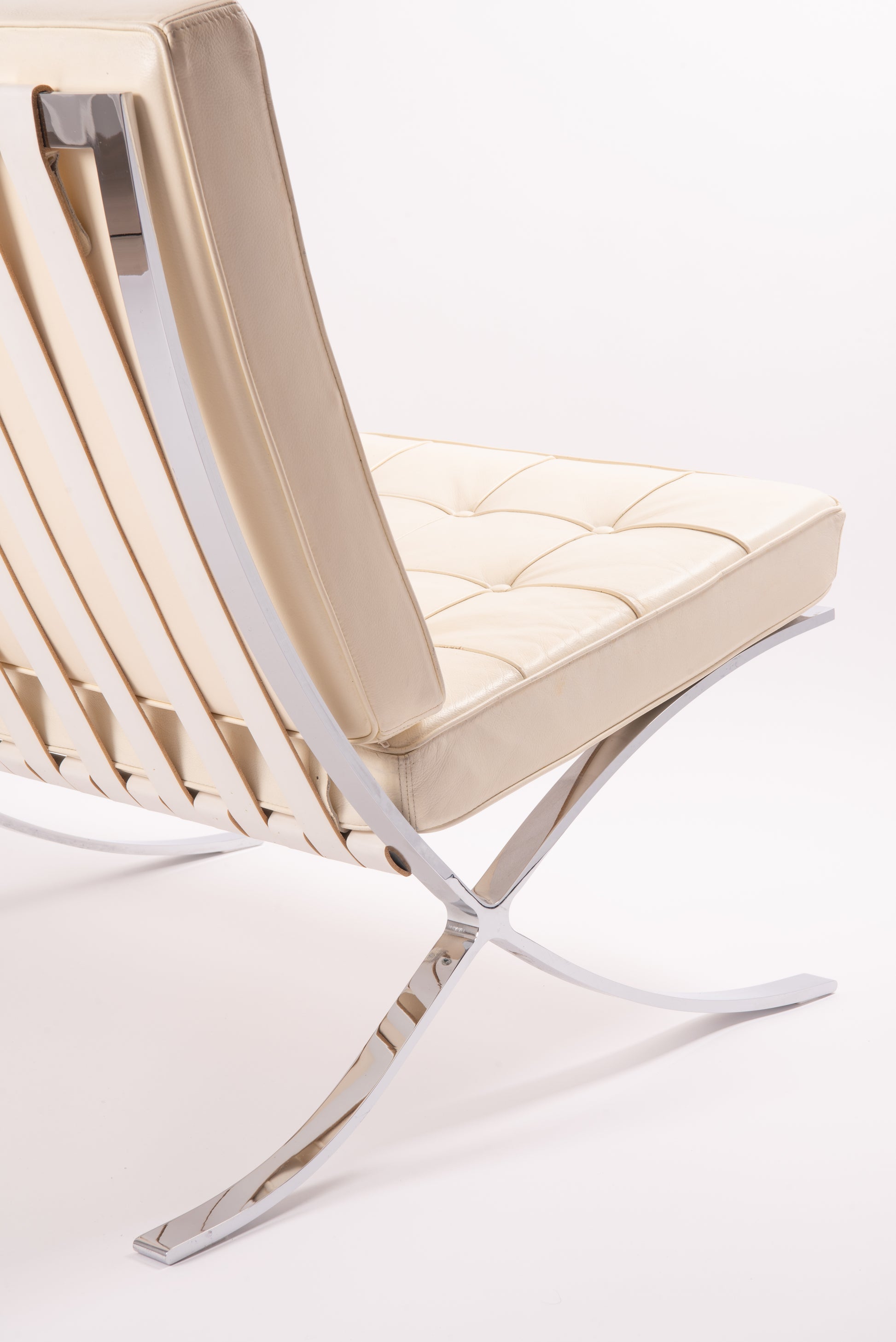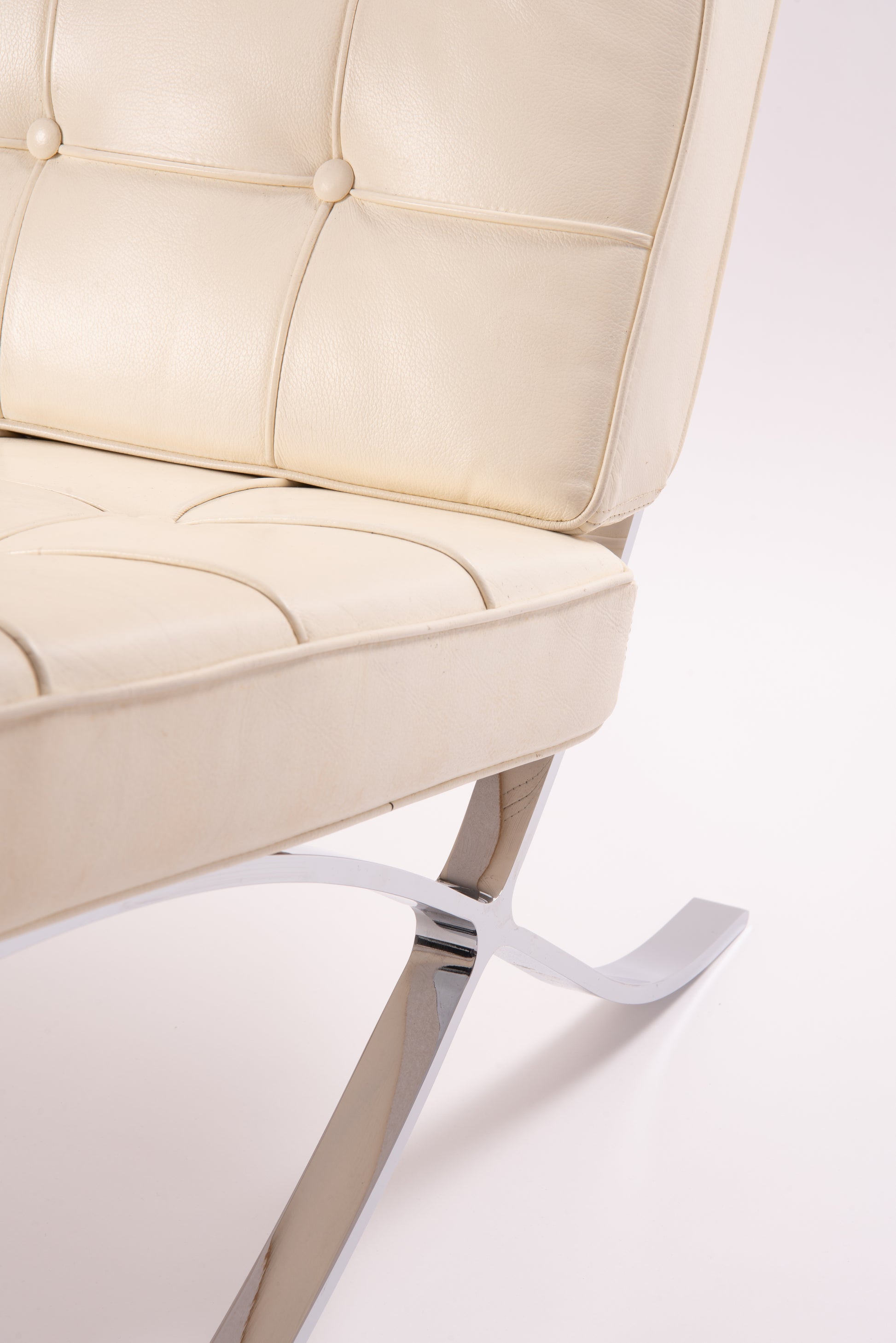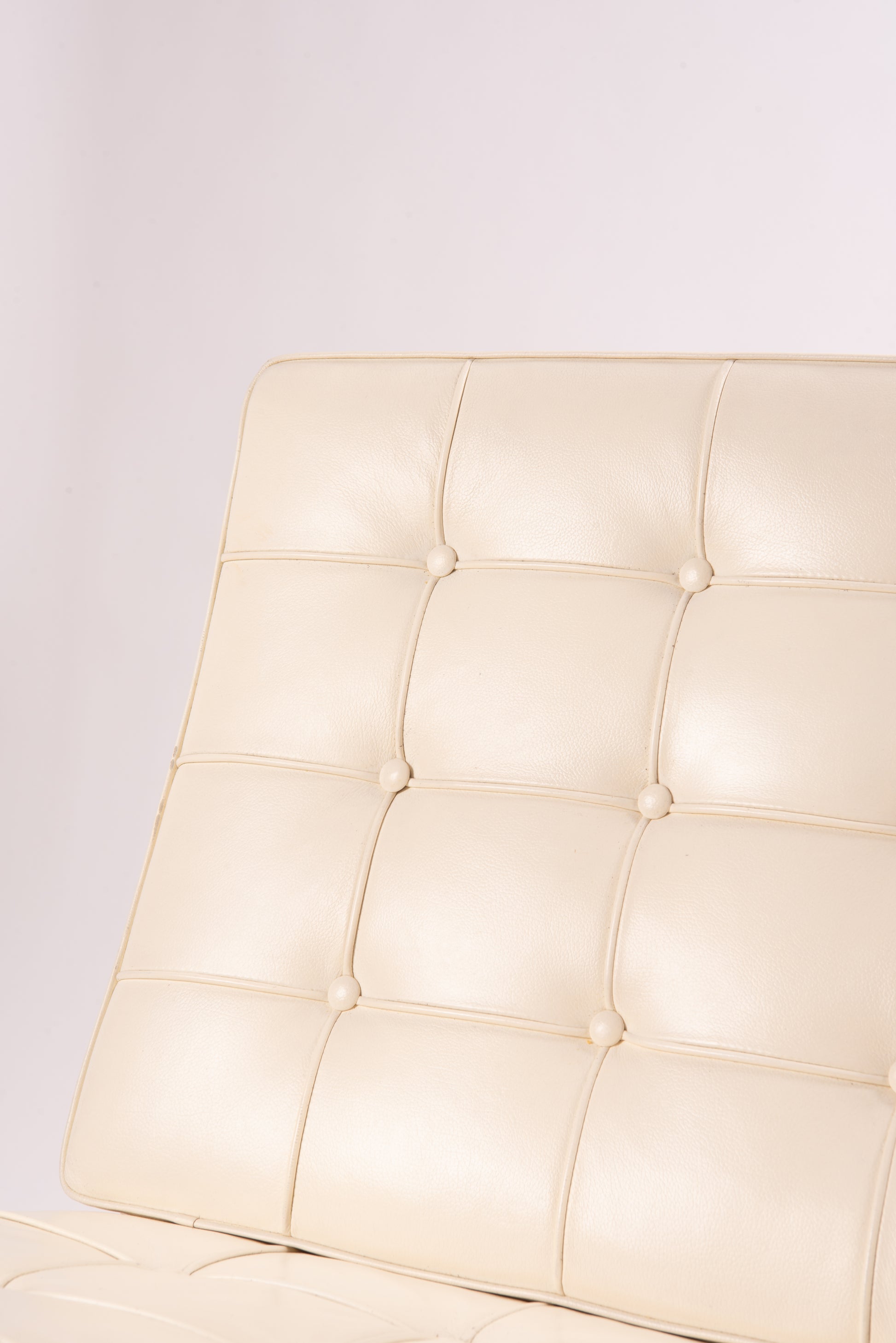 Barcelona Chair Ivory Leather in style of Ludwig Mies van der Rohe