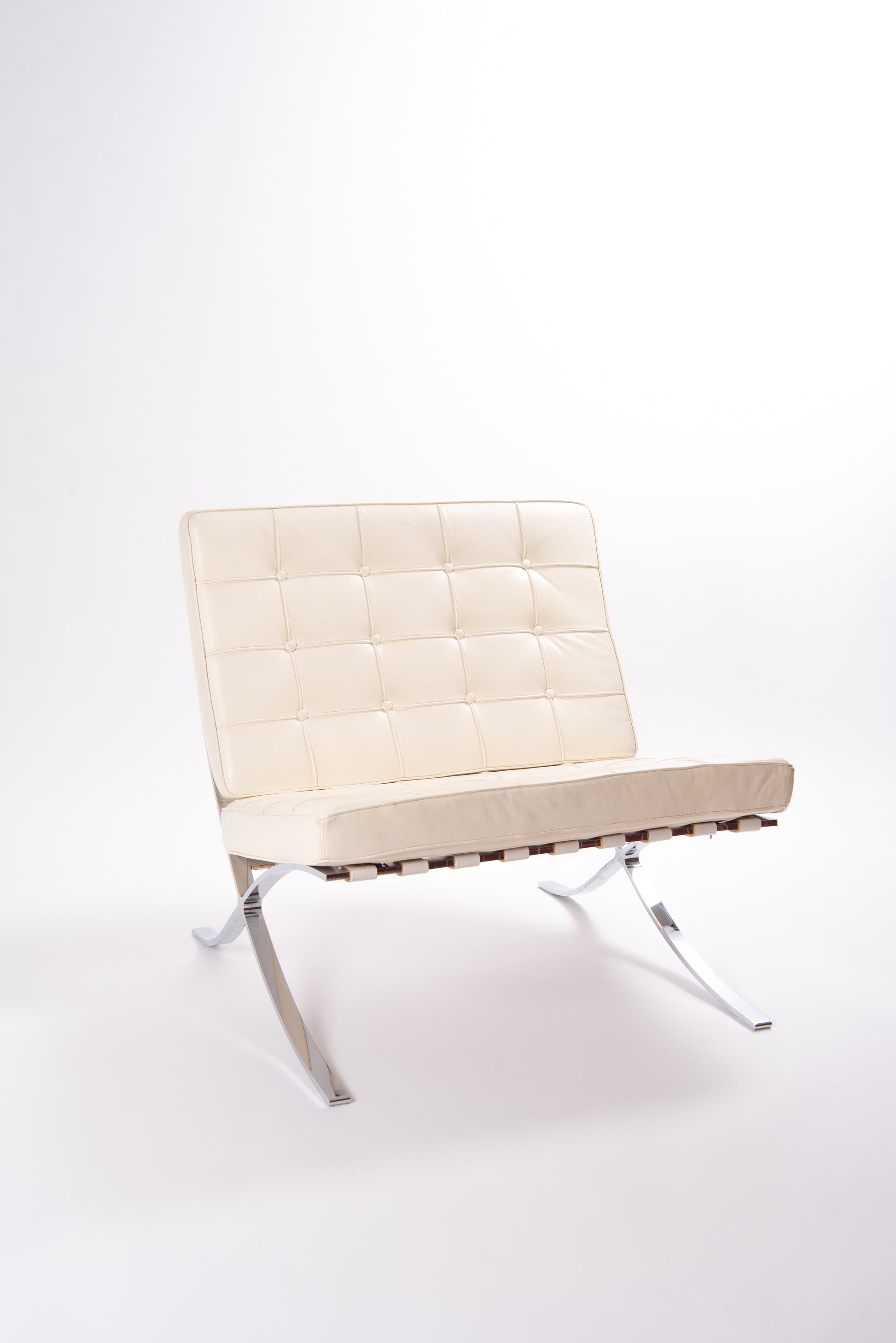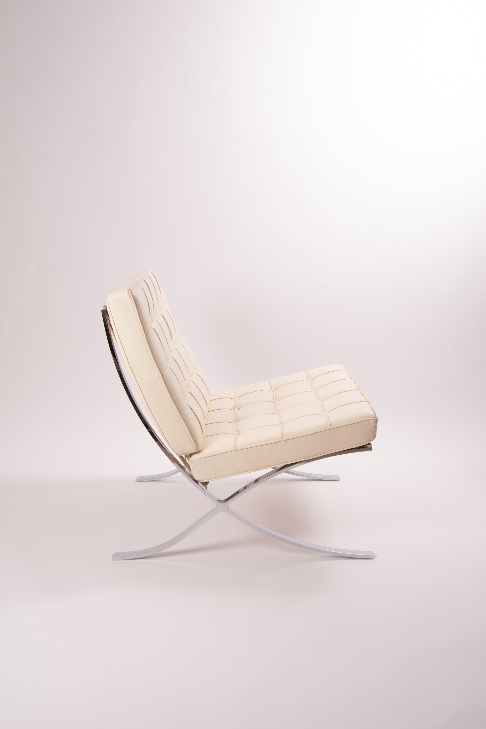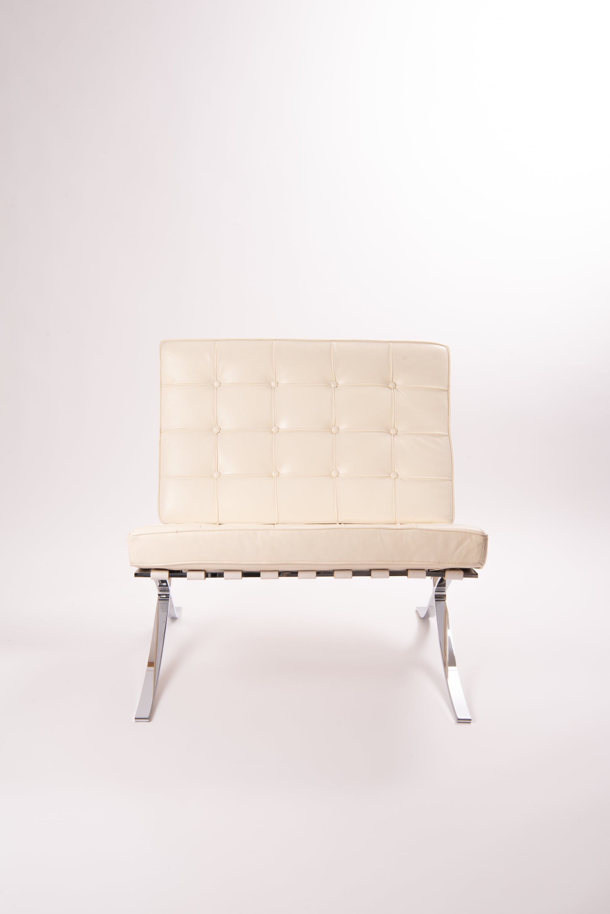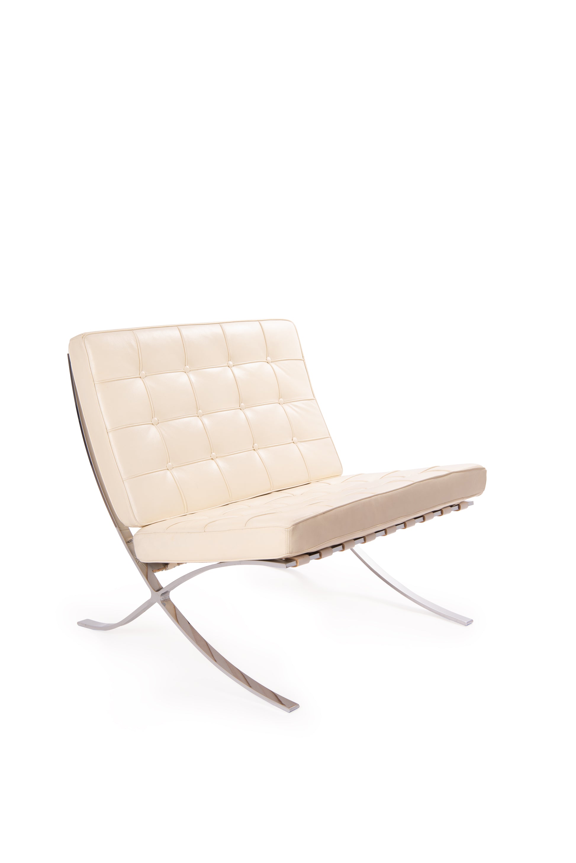 Barcelona Chair Ivory Leather in style of Ludwig Mies van der Rohe