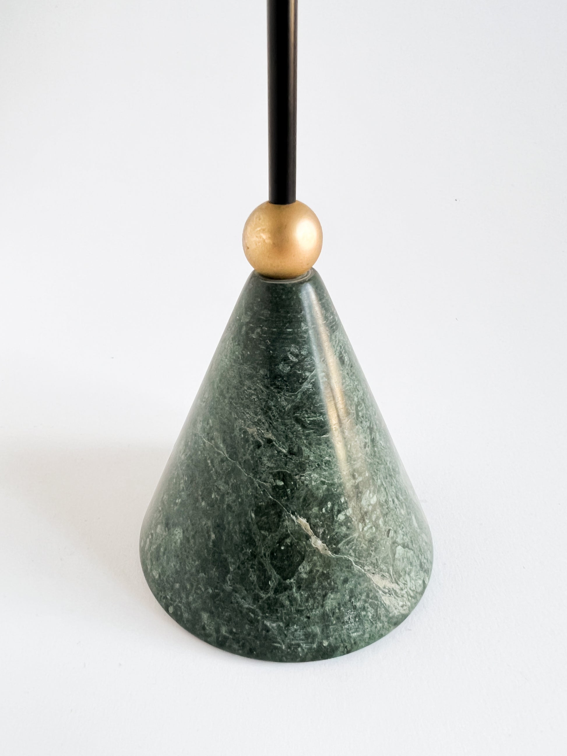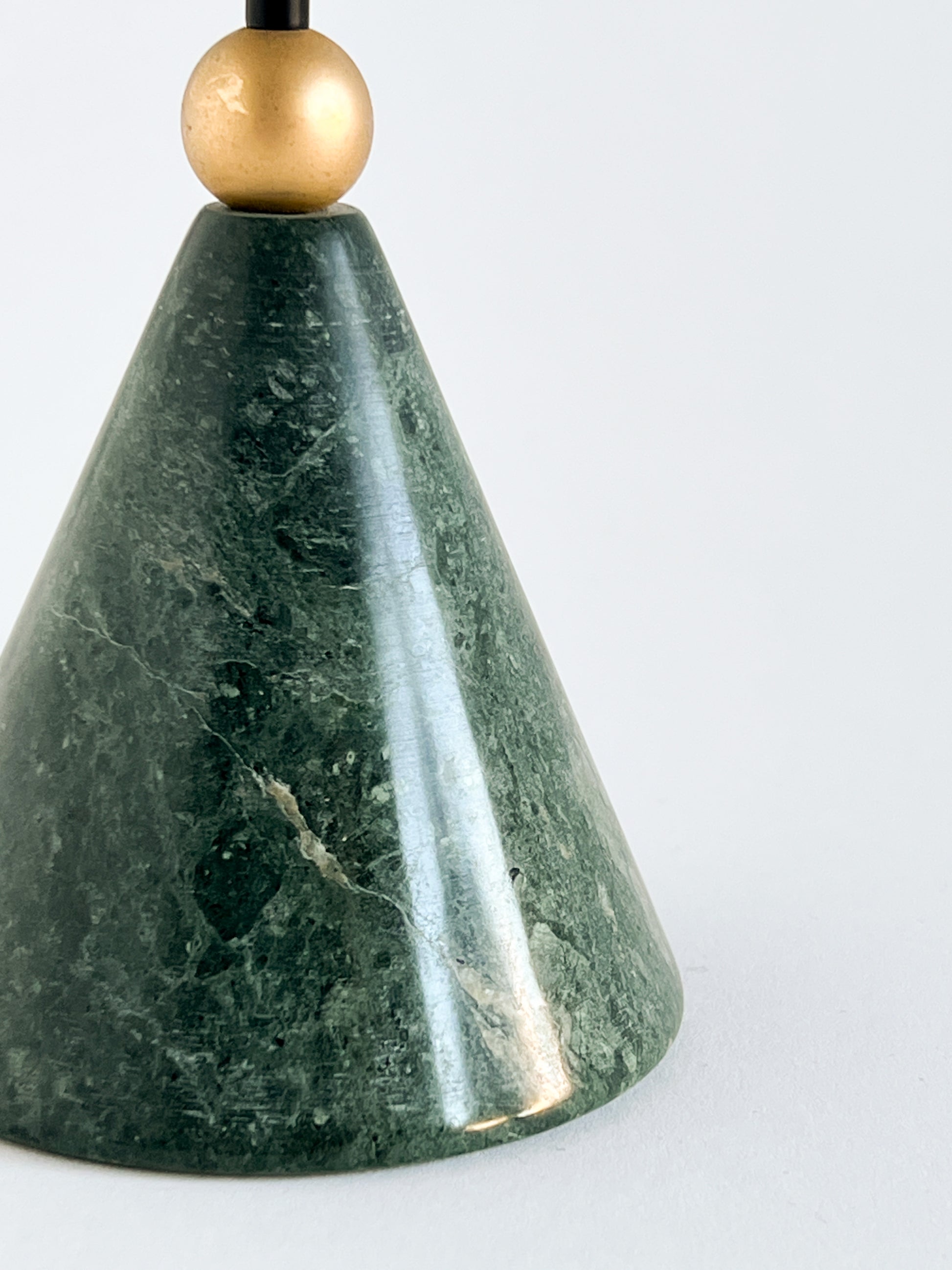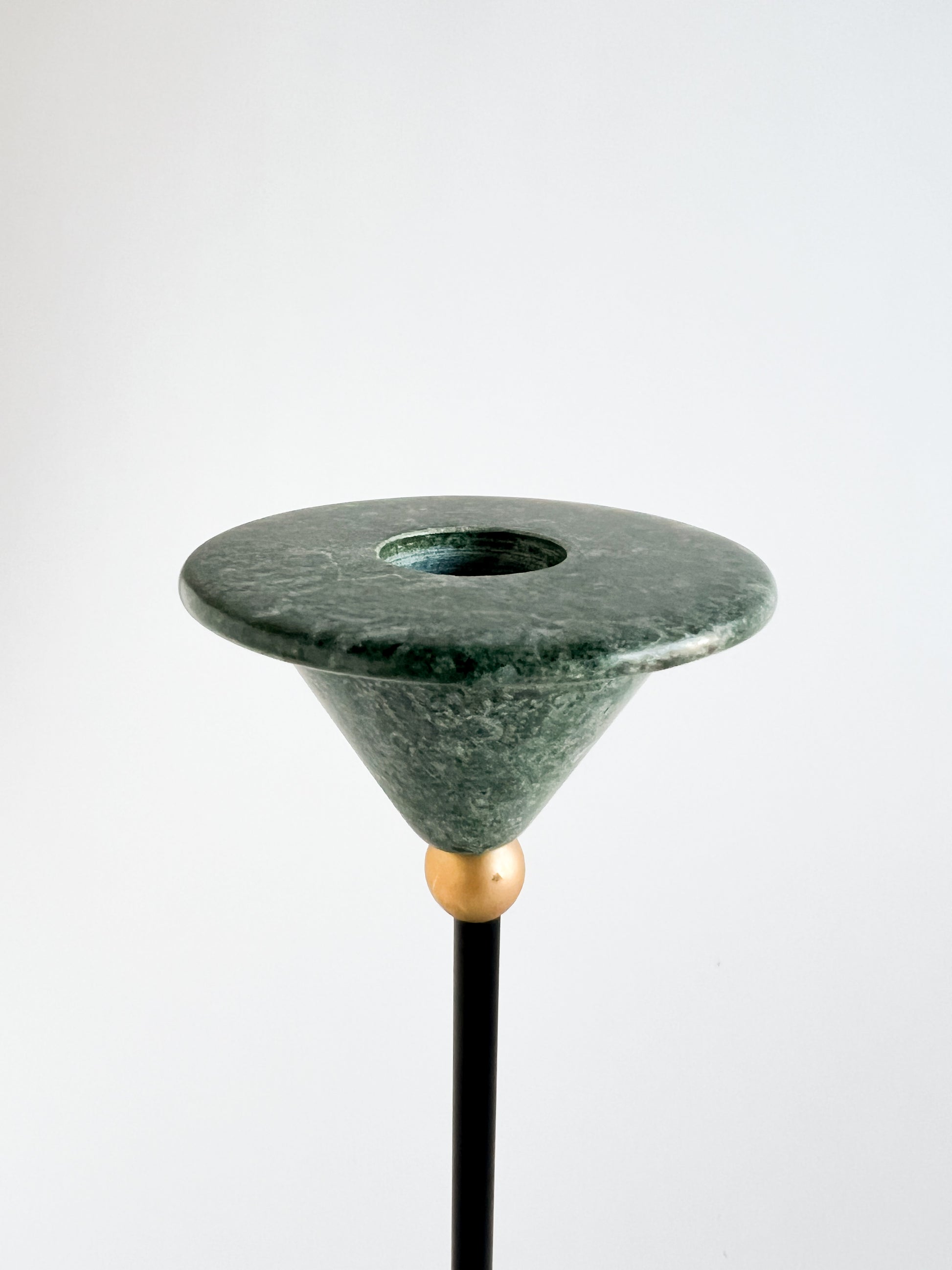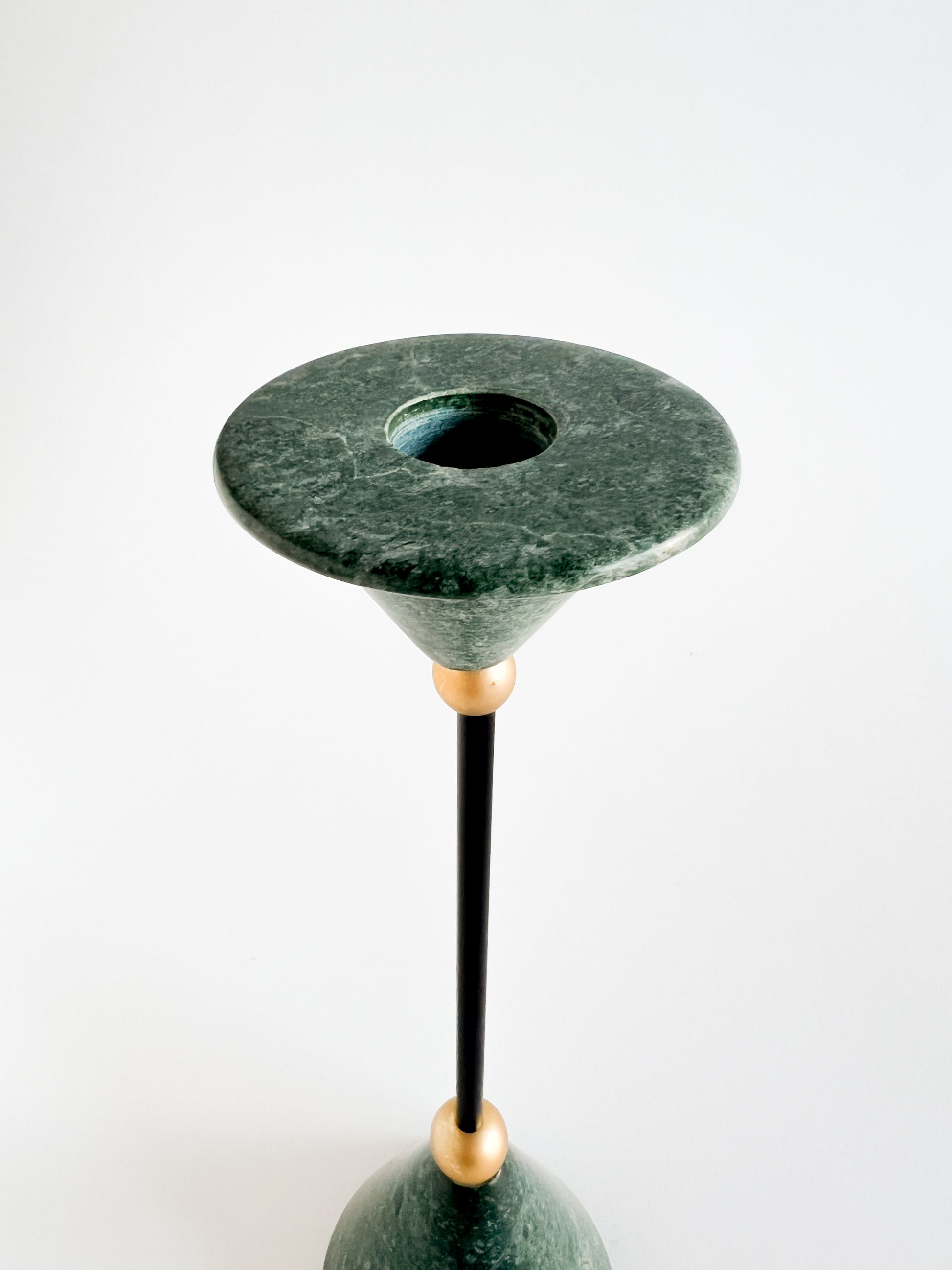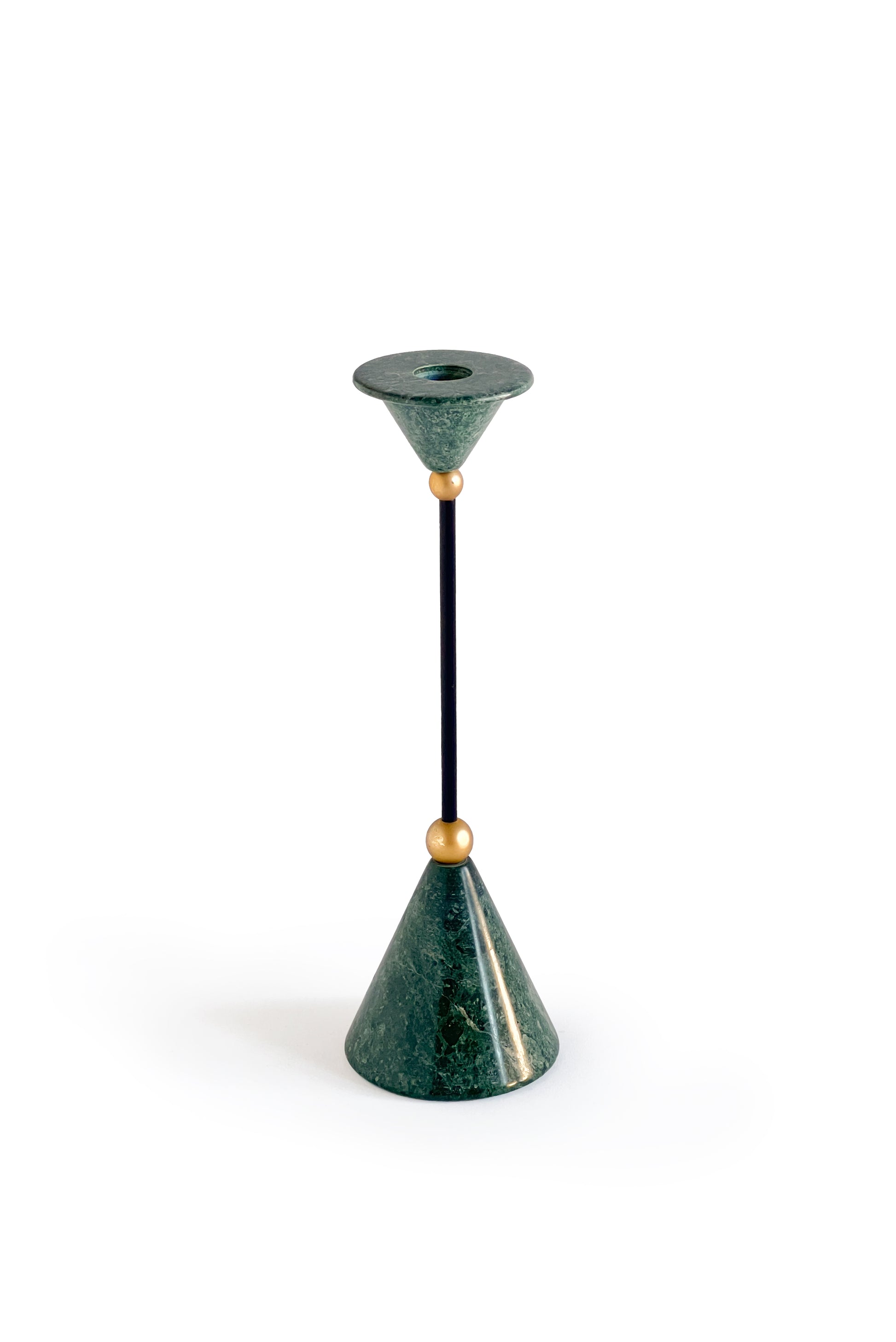 The Memphis Candleholder is a stunning representation of the captivating impact of the Italian Memphis movement on late 1980s design. Its form reflects a fusion of classic style and shapes, while it’s green marble material has an earthy elegant accent.