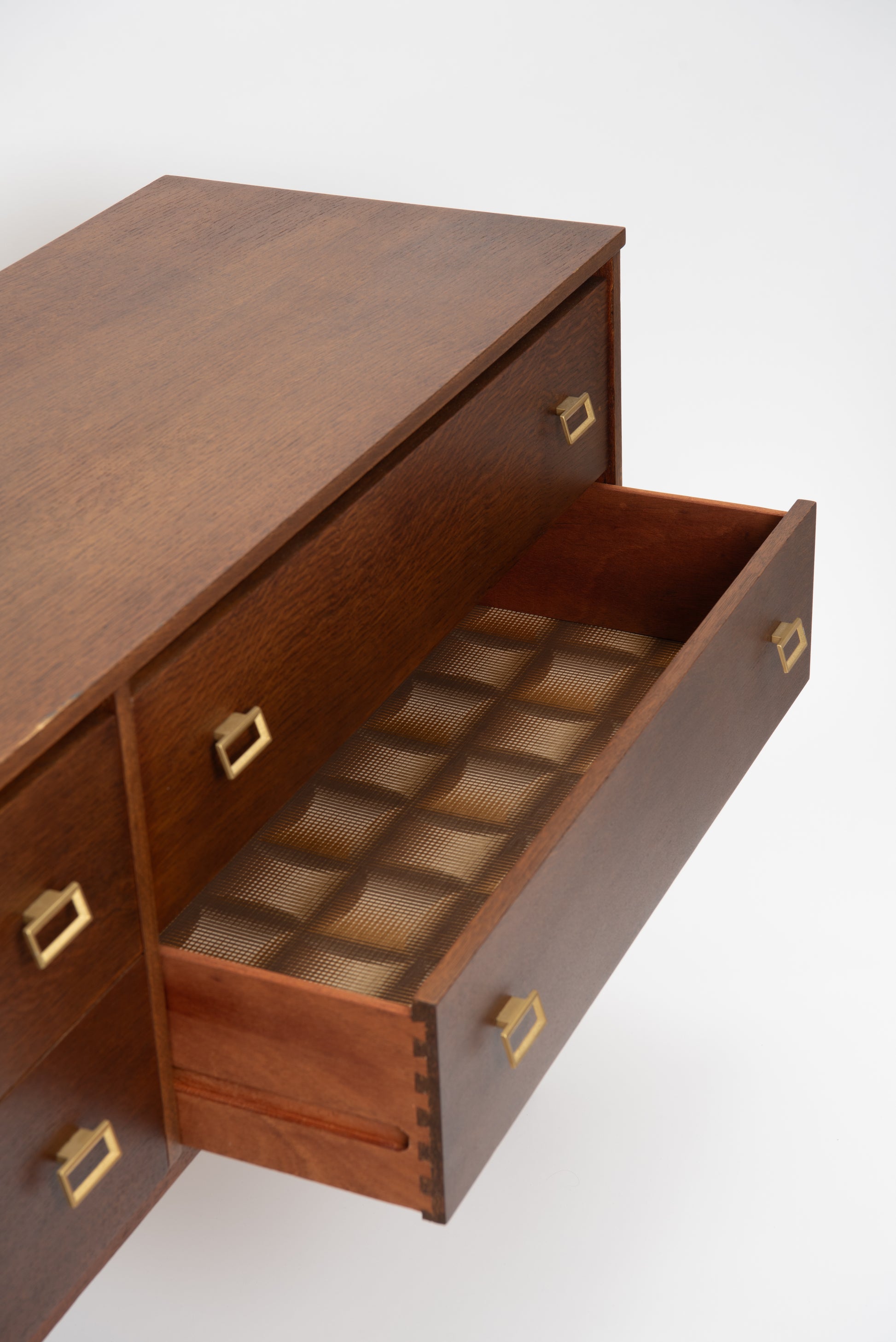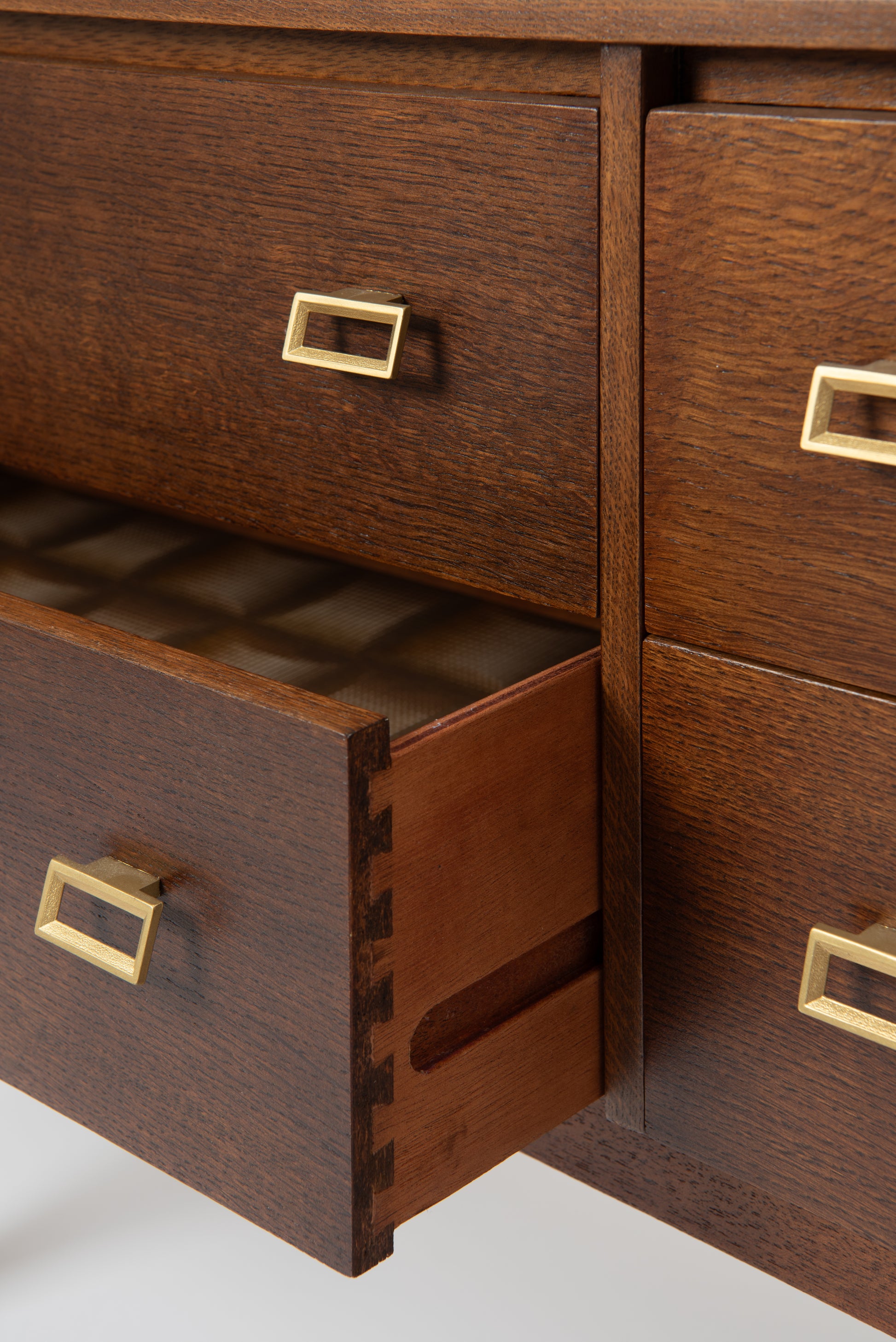 Its clean, straight lines and solid stance are complemented by subtle brass handle accents, creating a piece that's as functional as it is stylish