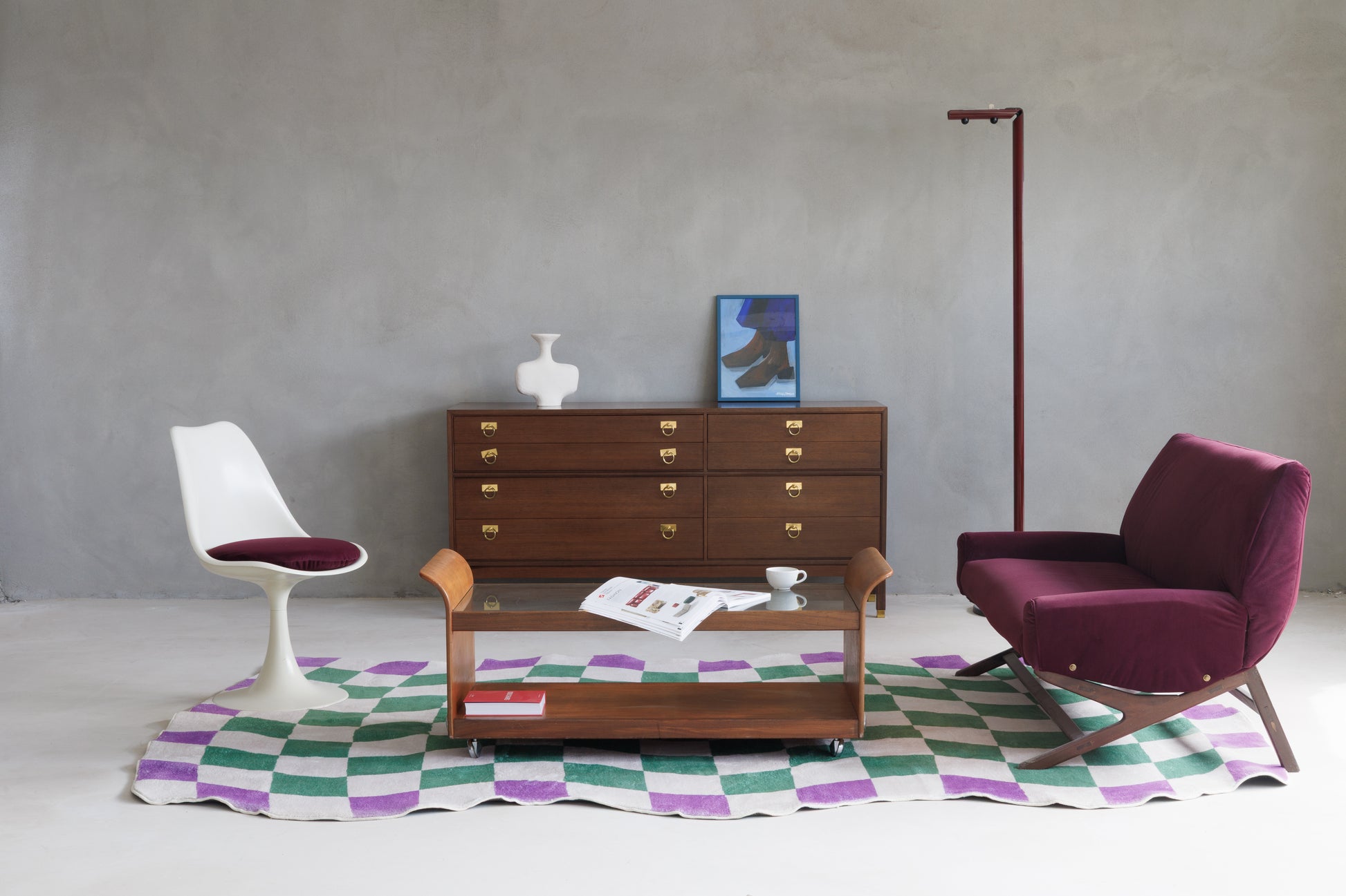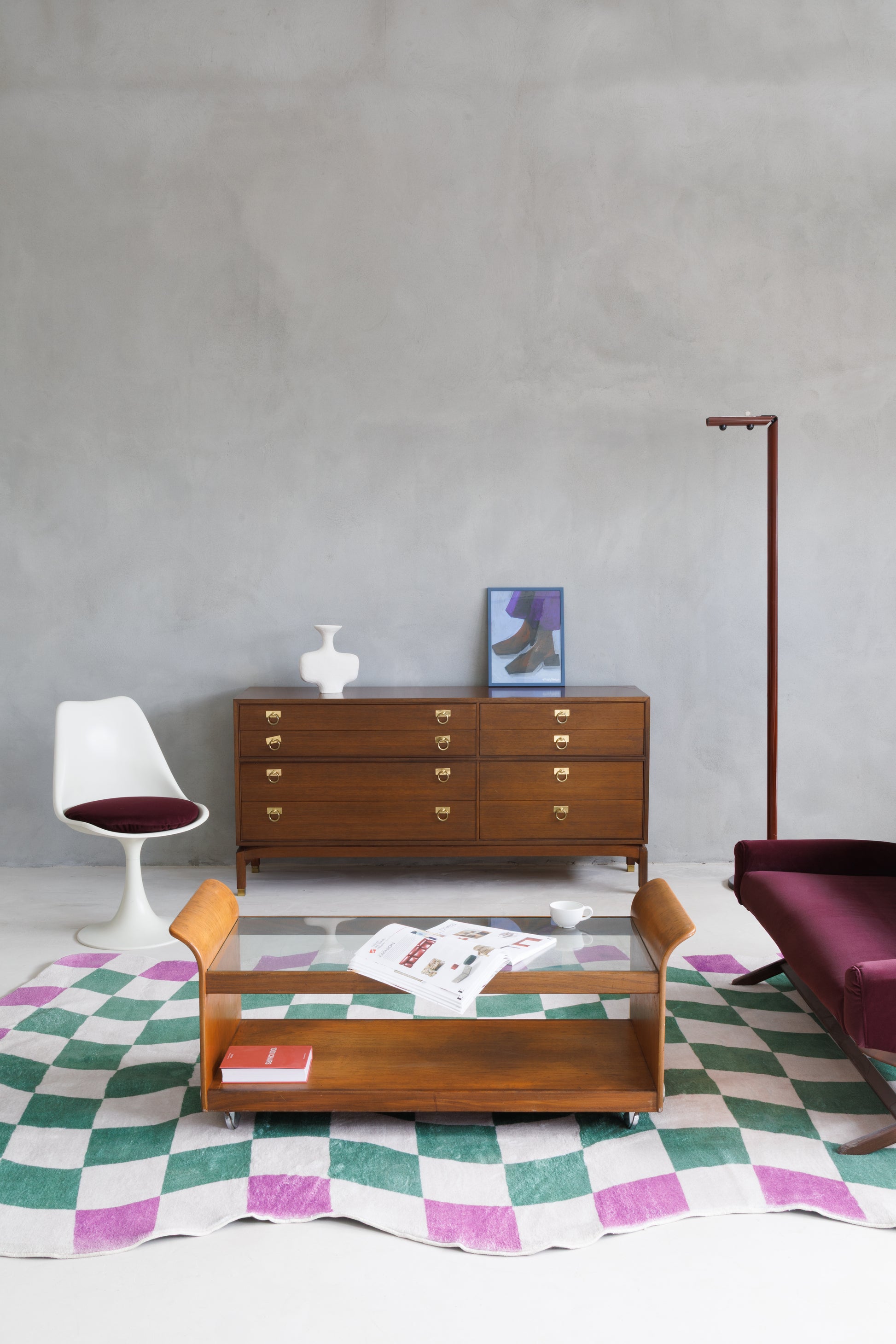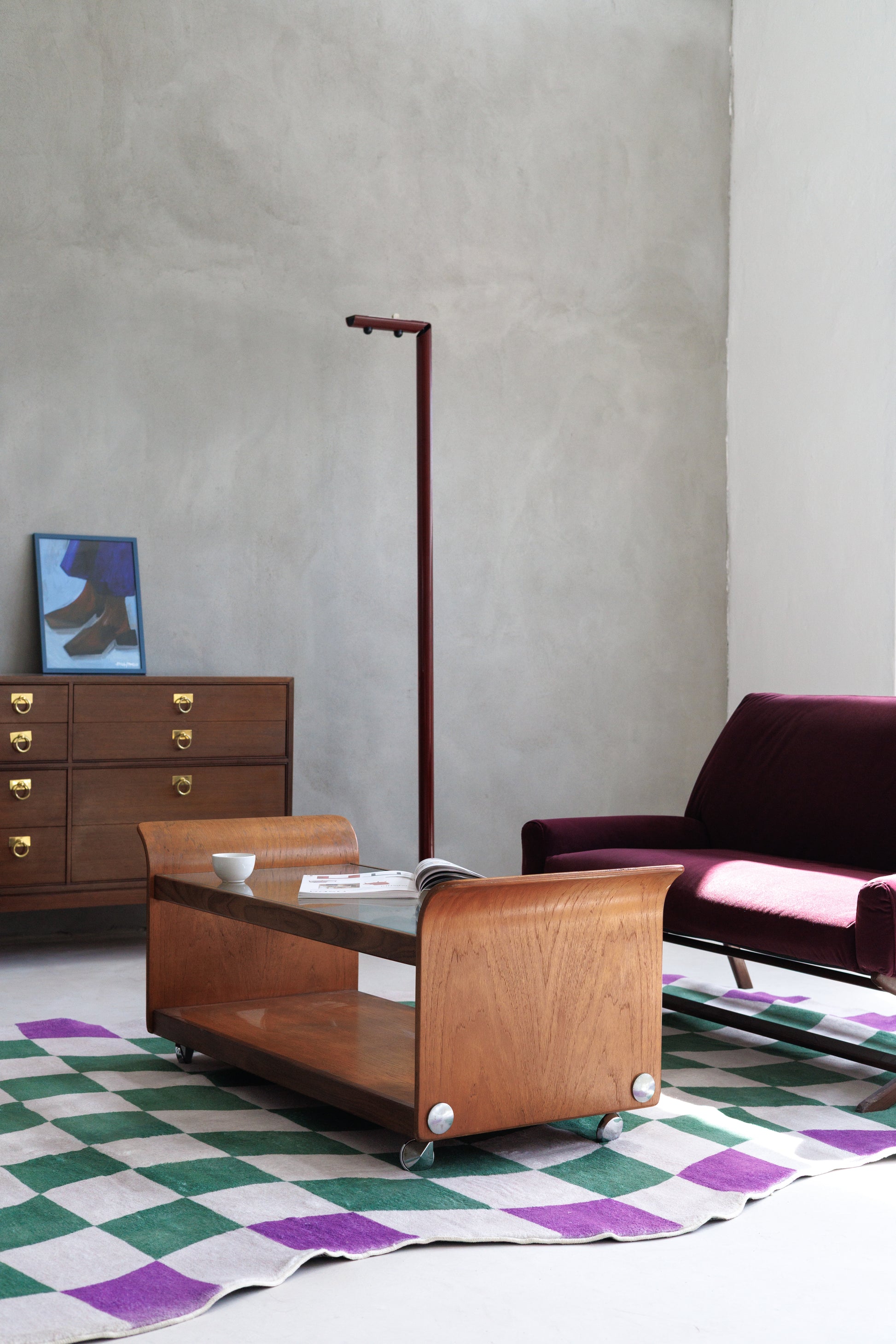 Set on discreet casters, the piece is easy to move while retaining its timeless presence. A true statement of mid-century craftsmanship, this table blends organic warmth with modernist simplicity — perfect for any contemporary or vintage-inspired interior.