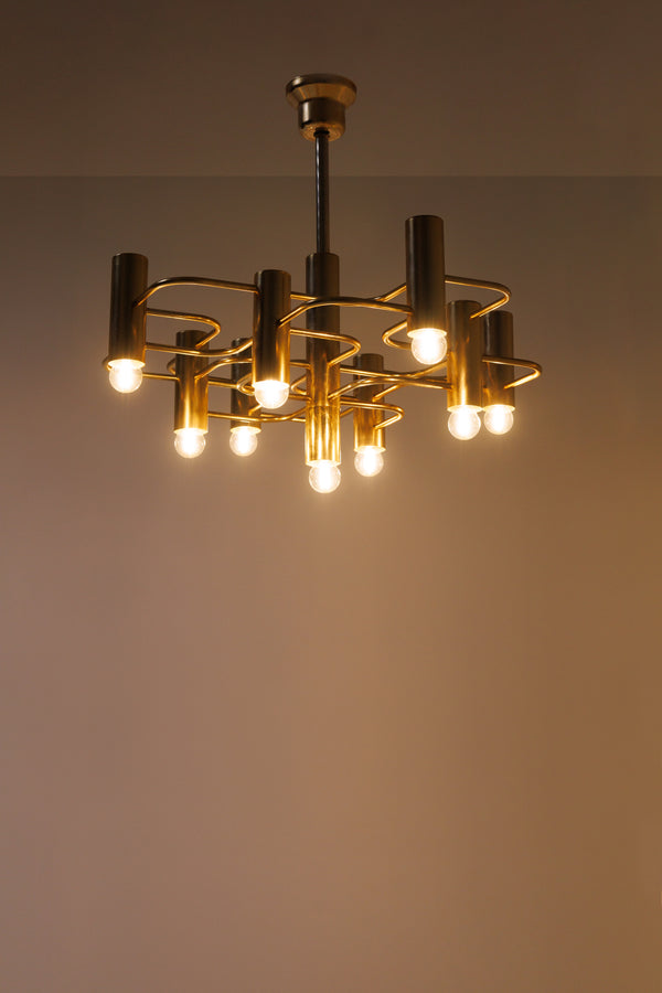 Gaetano Sciolari for Boulanger Gilded Brass Chandelier