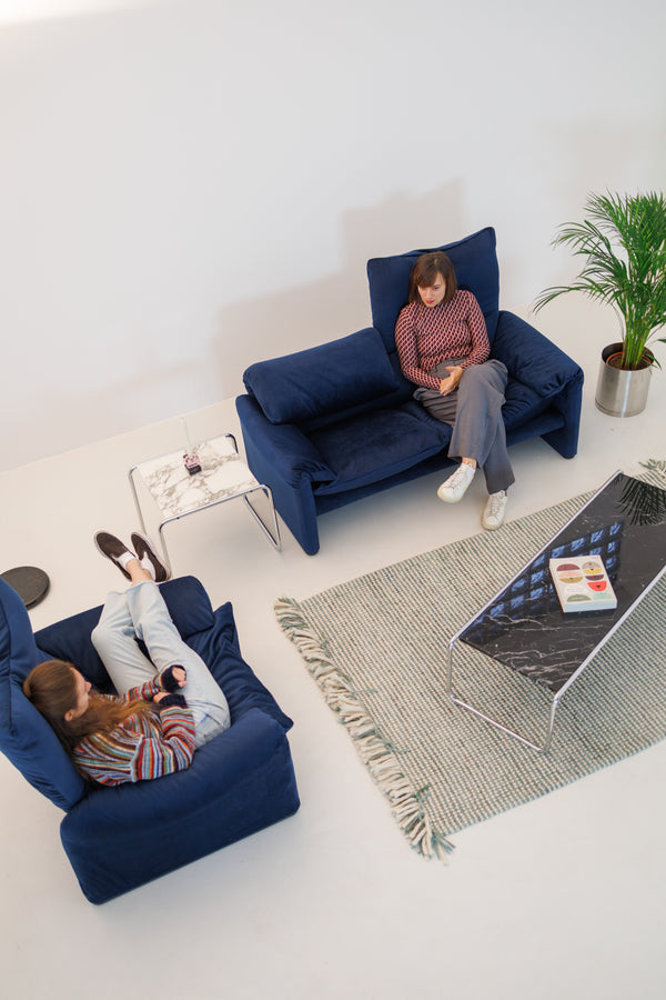 Set Canapea & Fotoliu Vintage din Catifea Albastră de Vico Magistretti pentru Cassina - Italia, anii '70