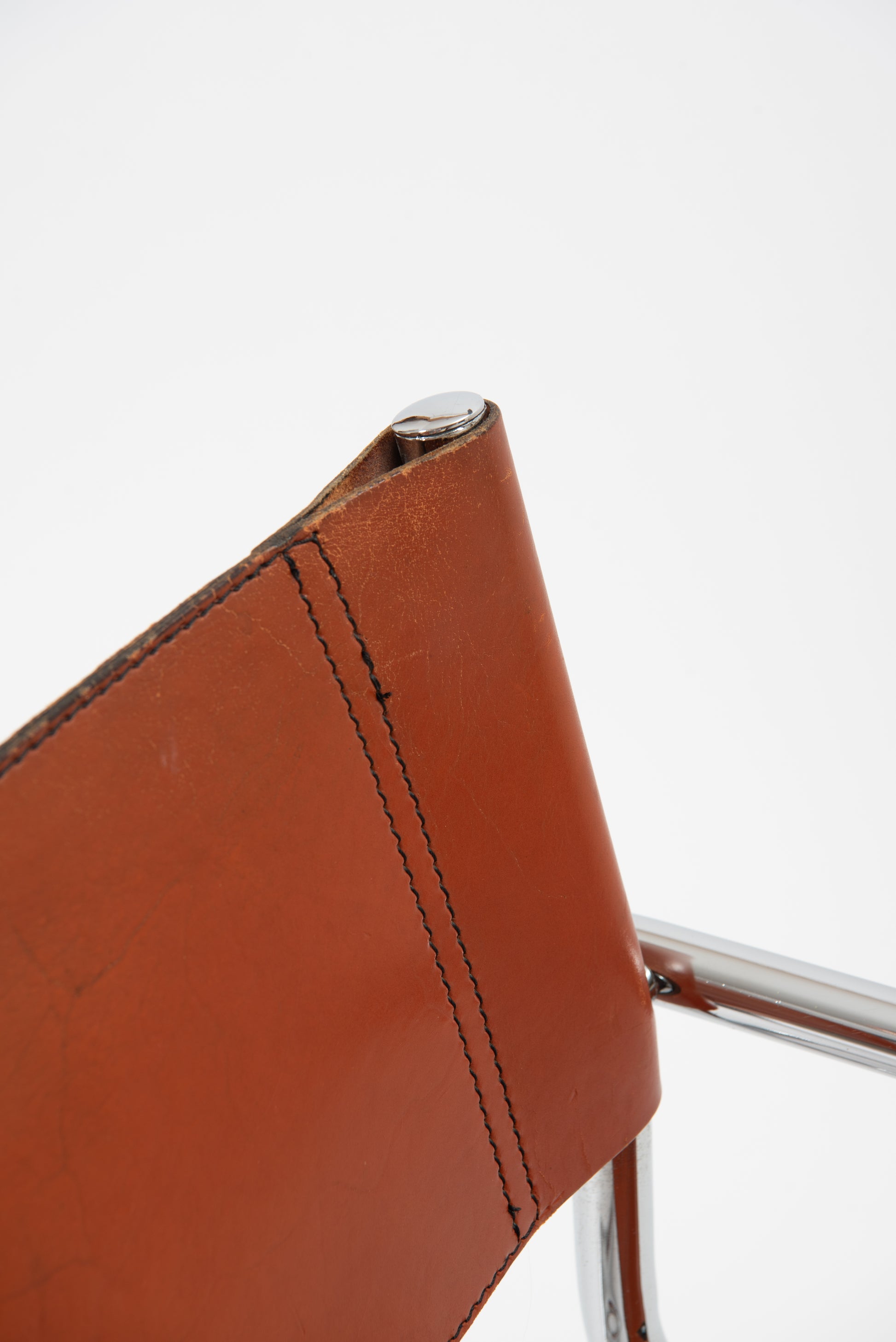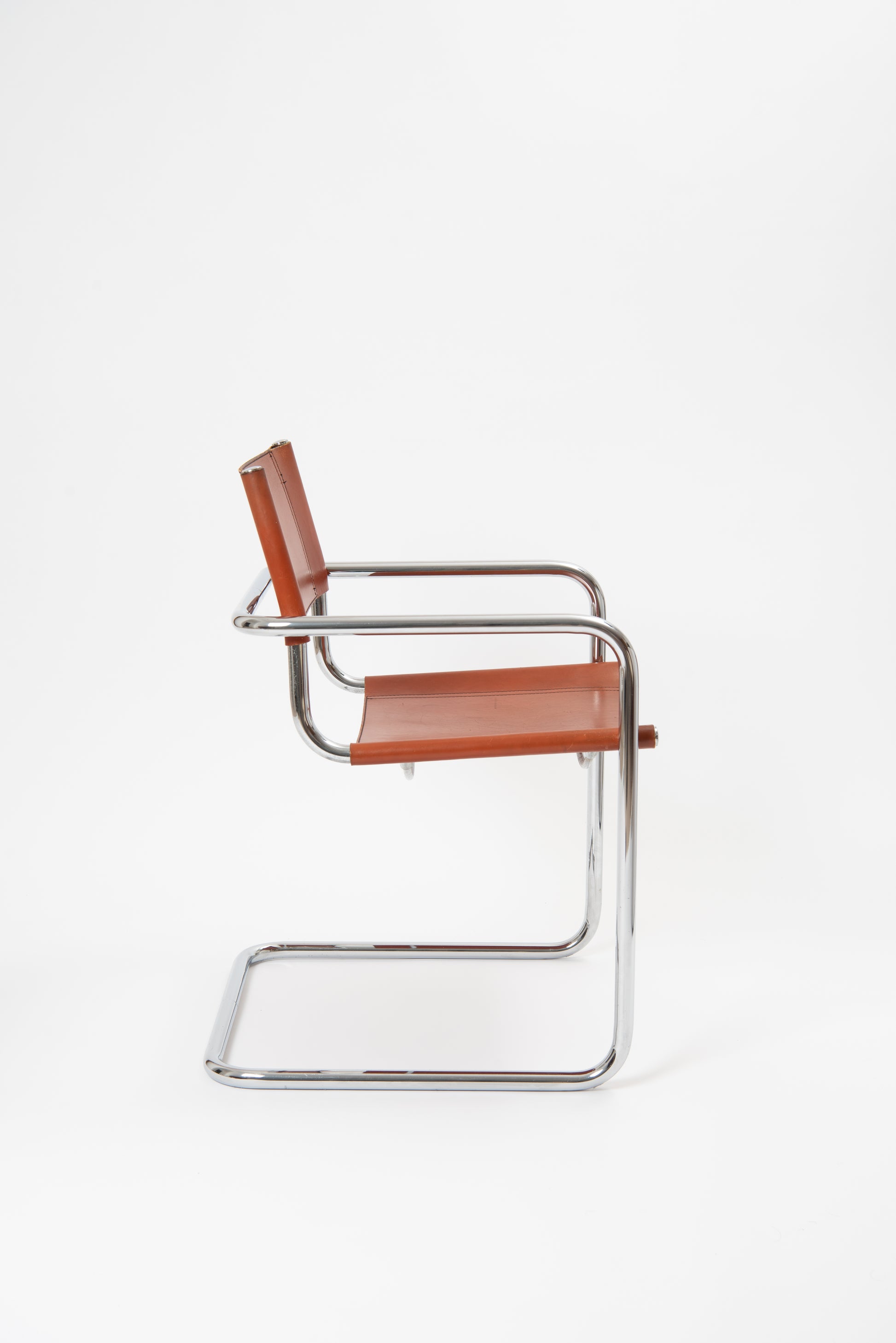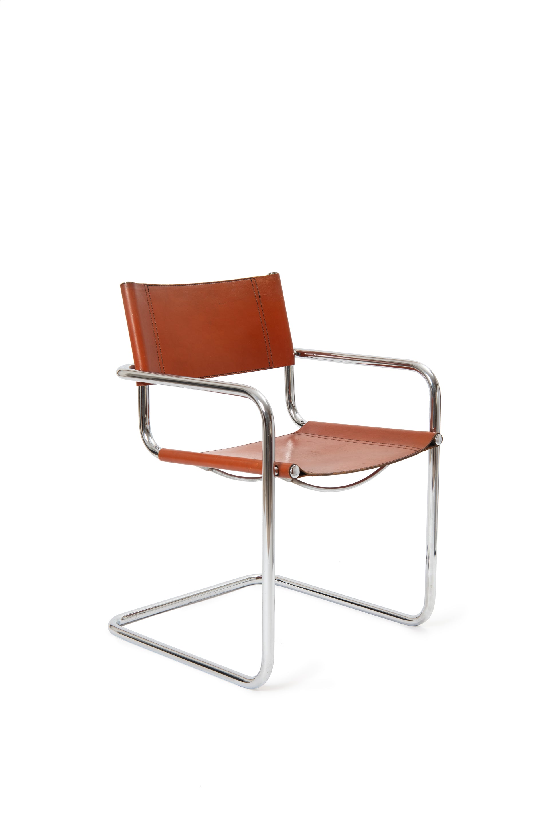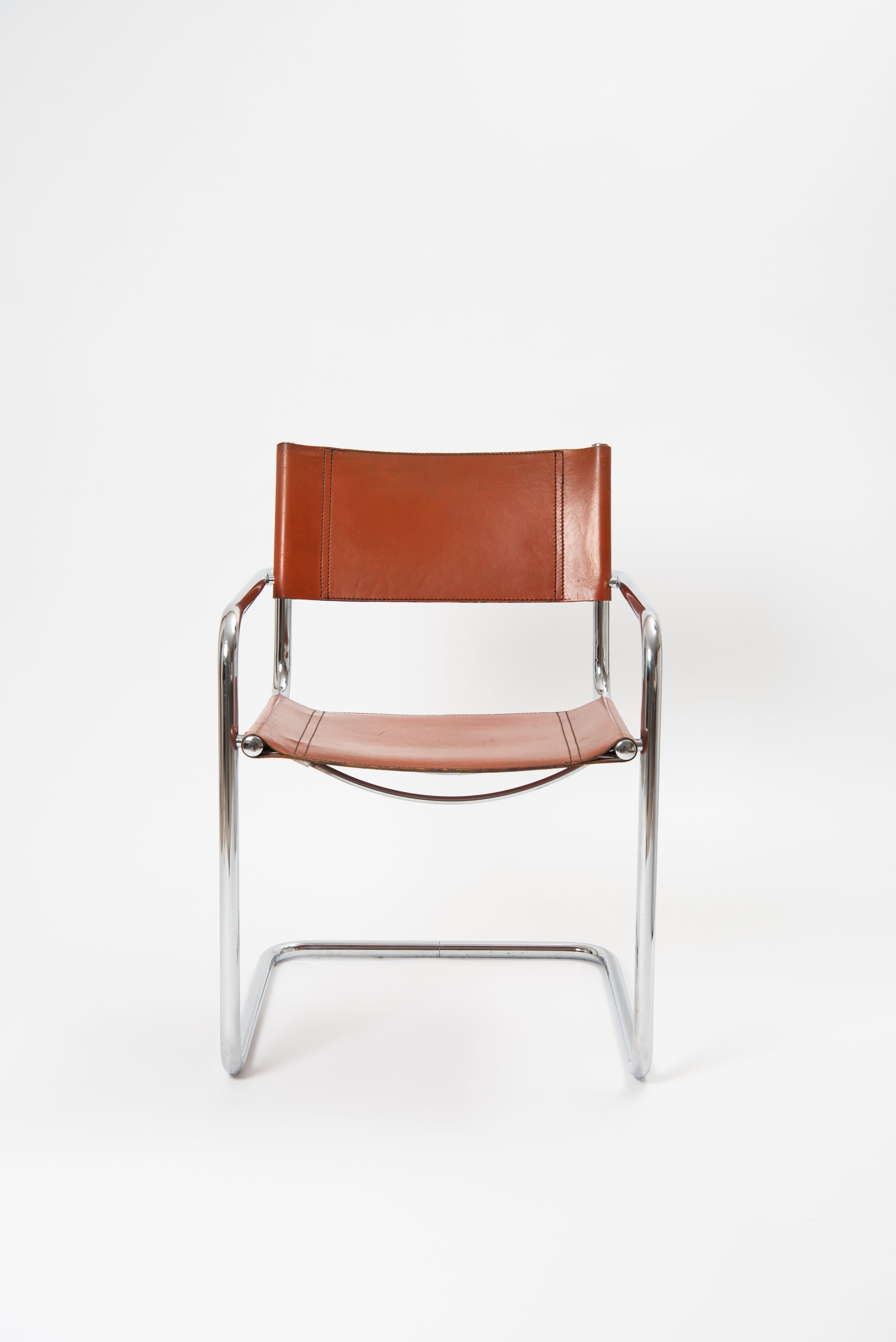 Aceste scaune în stil Bauhaus au fost produse pentru prima dată în Italia în anii 1960. Se remarcă prin tapițeria sa elegantă din piele groasă, patinată frumos de trecerea timpului, la nivelul șezutului, spătarului și cotierelor.