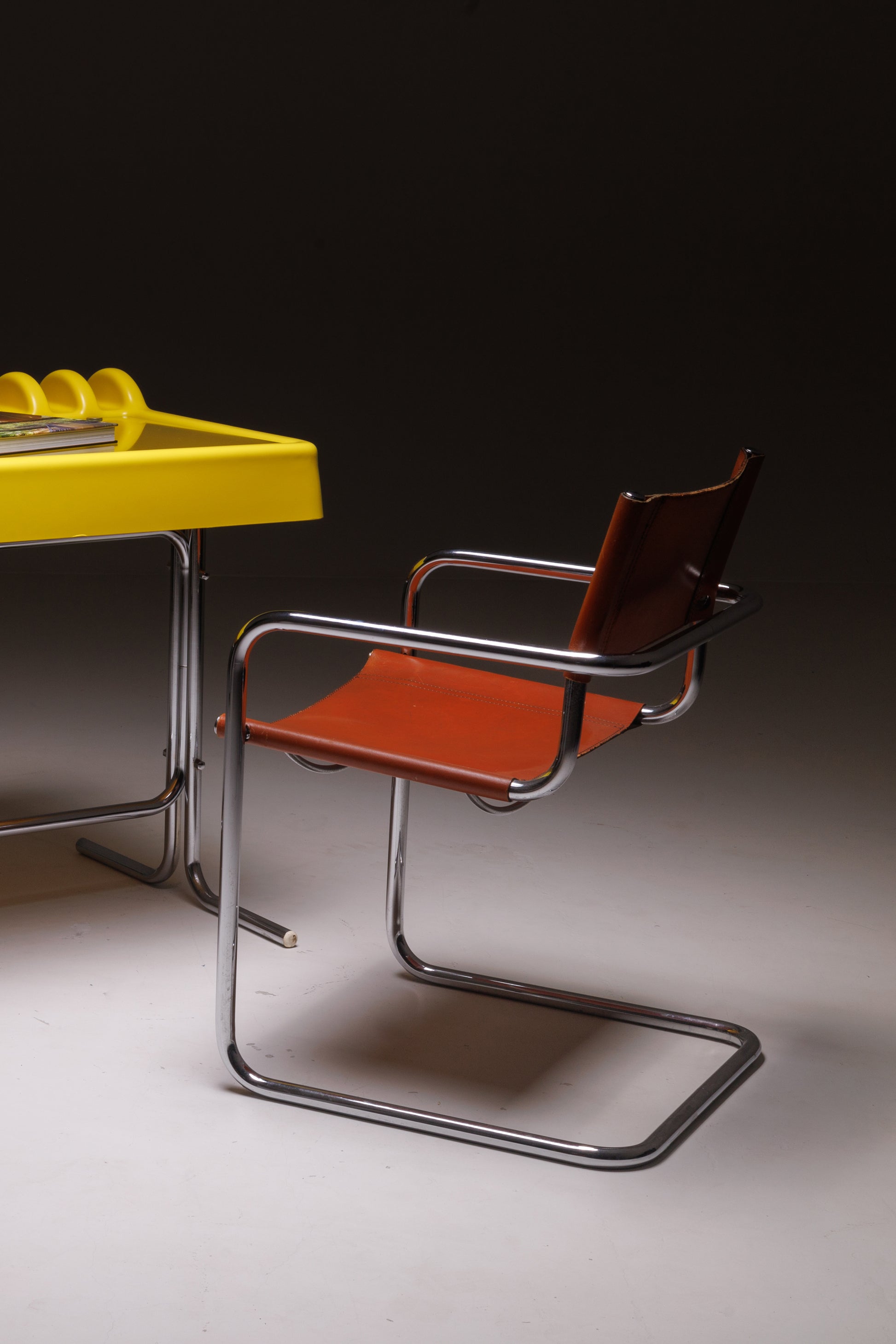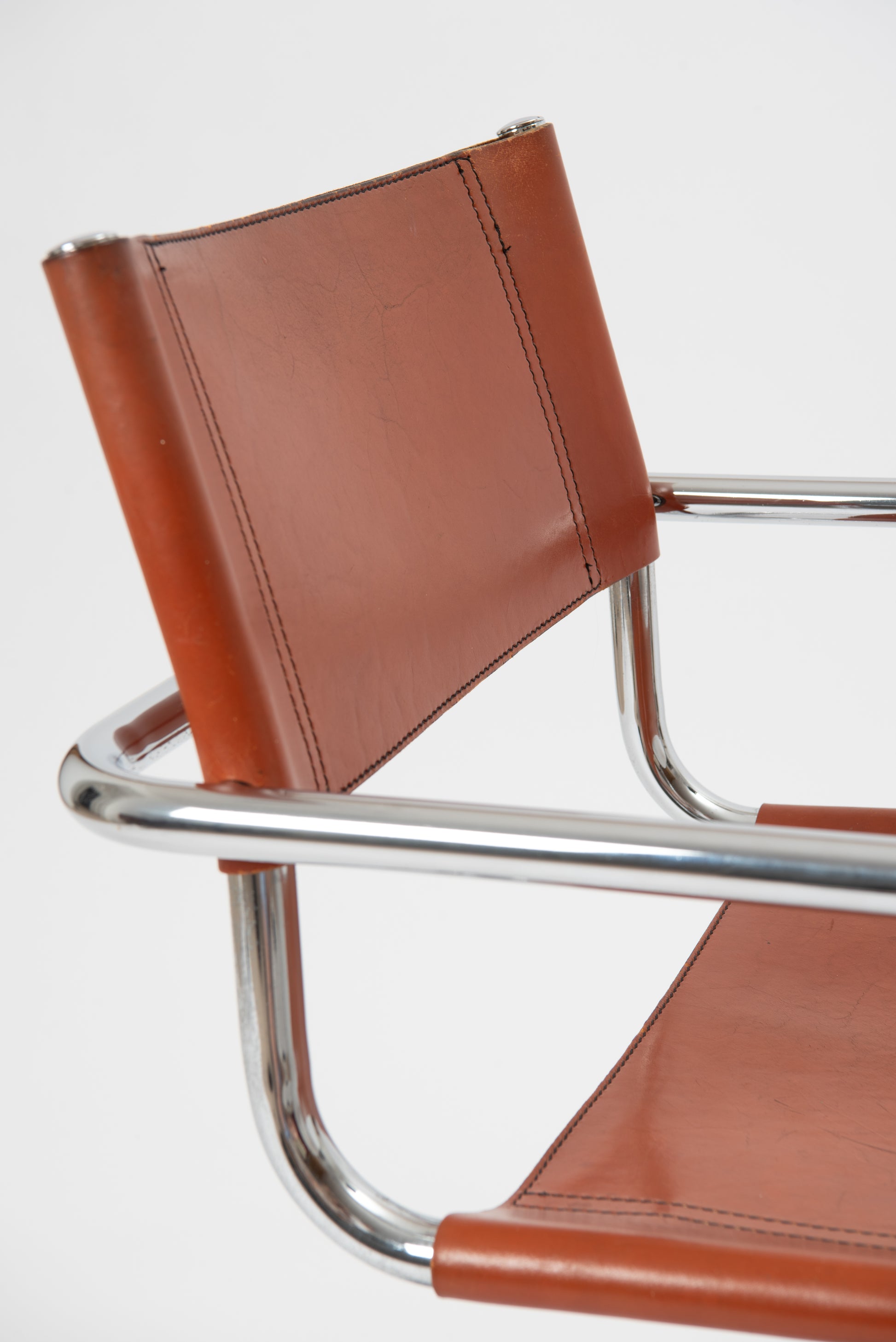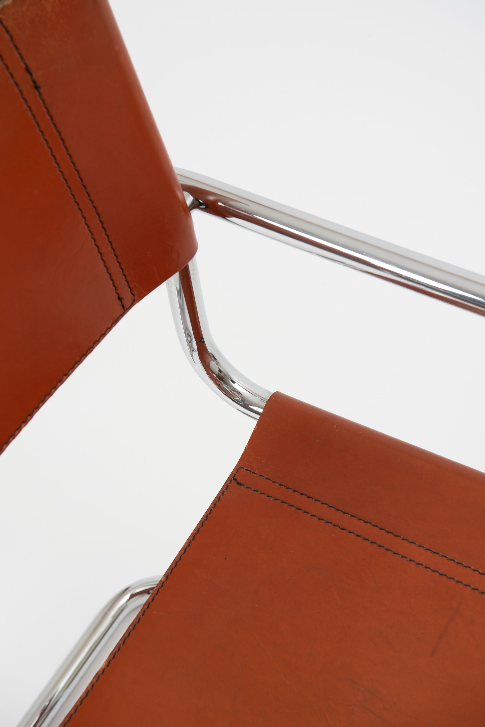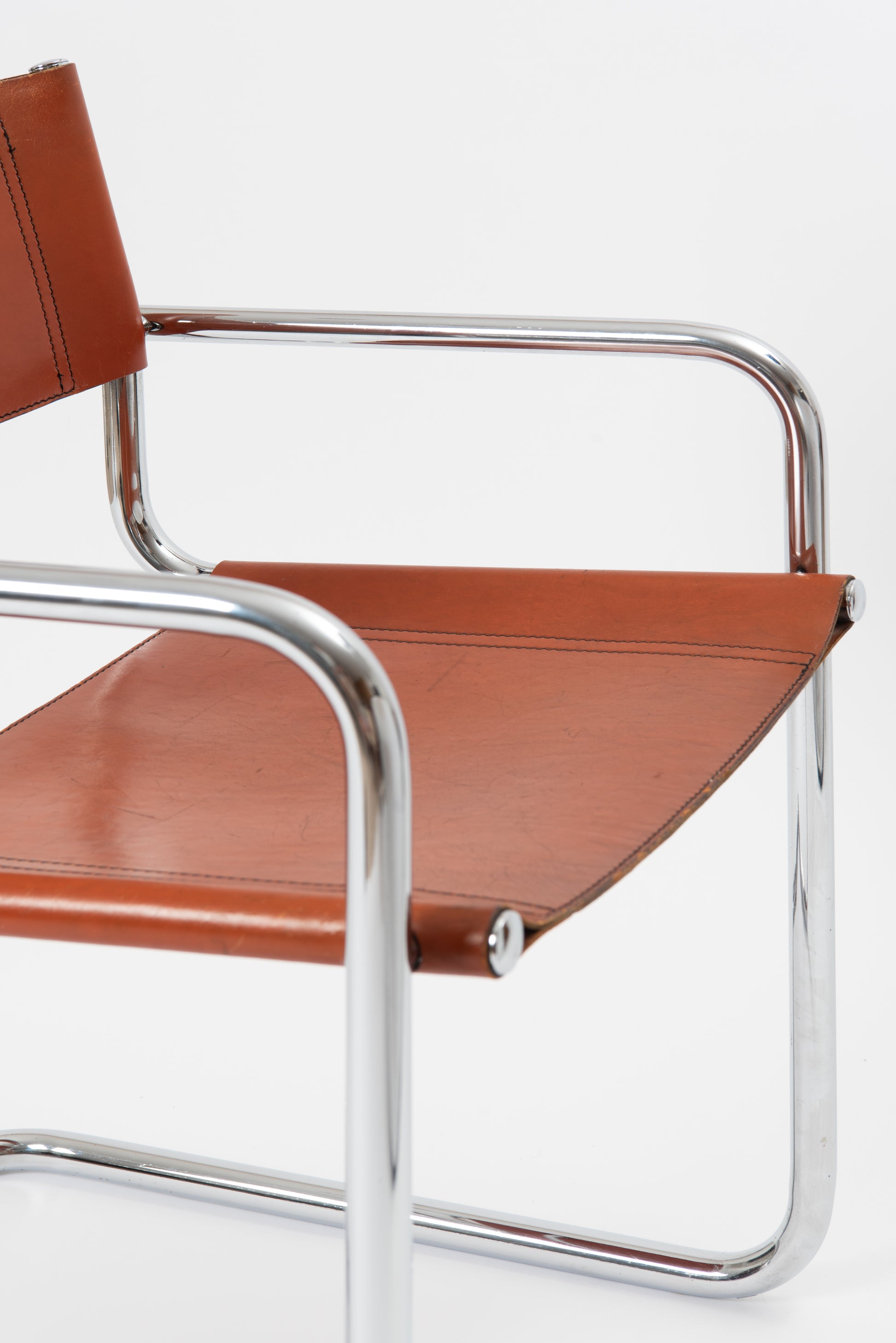Aceste scaune în stil Bauhaus au fost produse pentru prima dată în Italia în anii 1960. Se remarcă prin tapițeria sa elegantă din piele groasă, patinată frumos de trecerea timpului, la nivelul șezutului, spătarului și cotierelor.