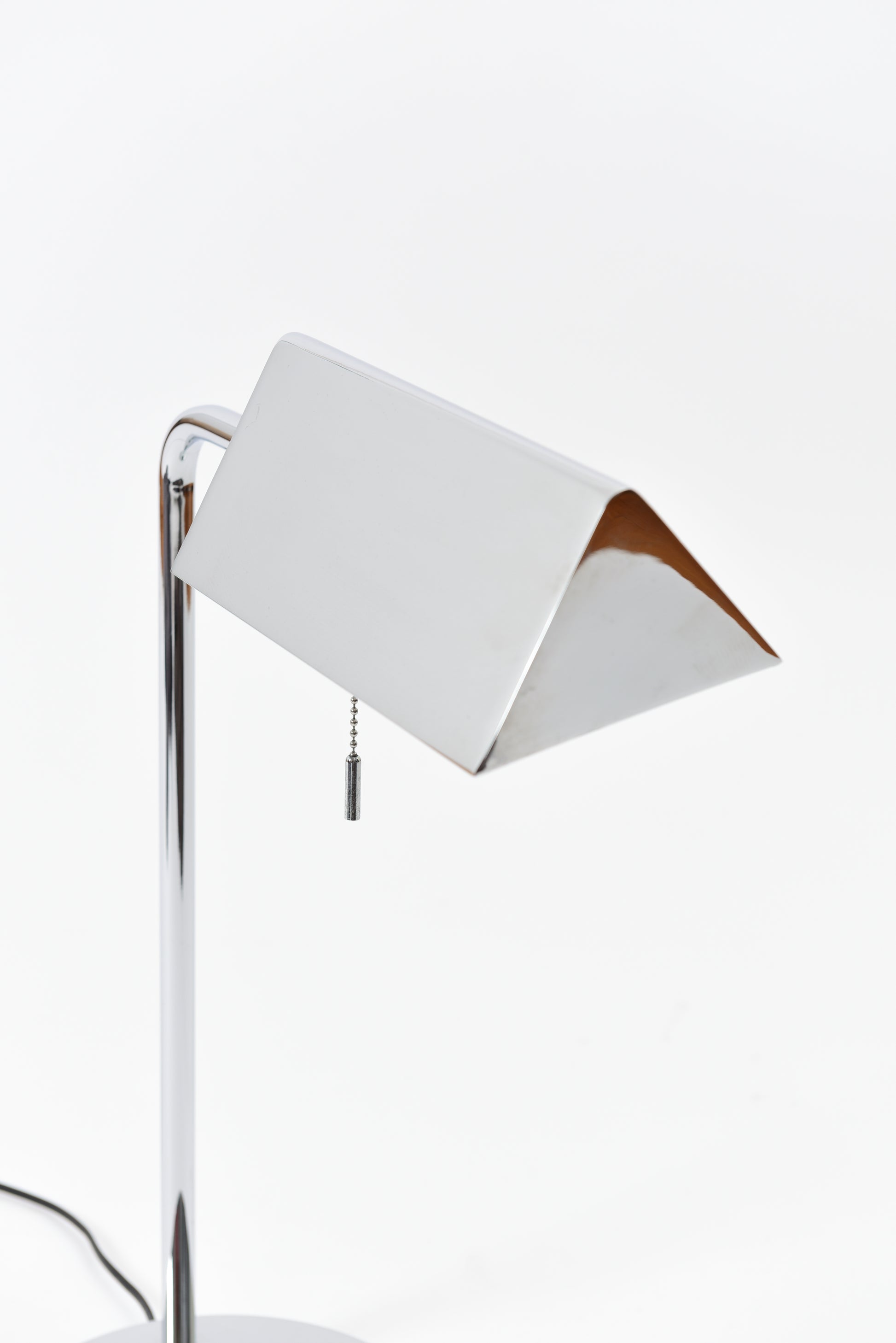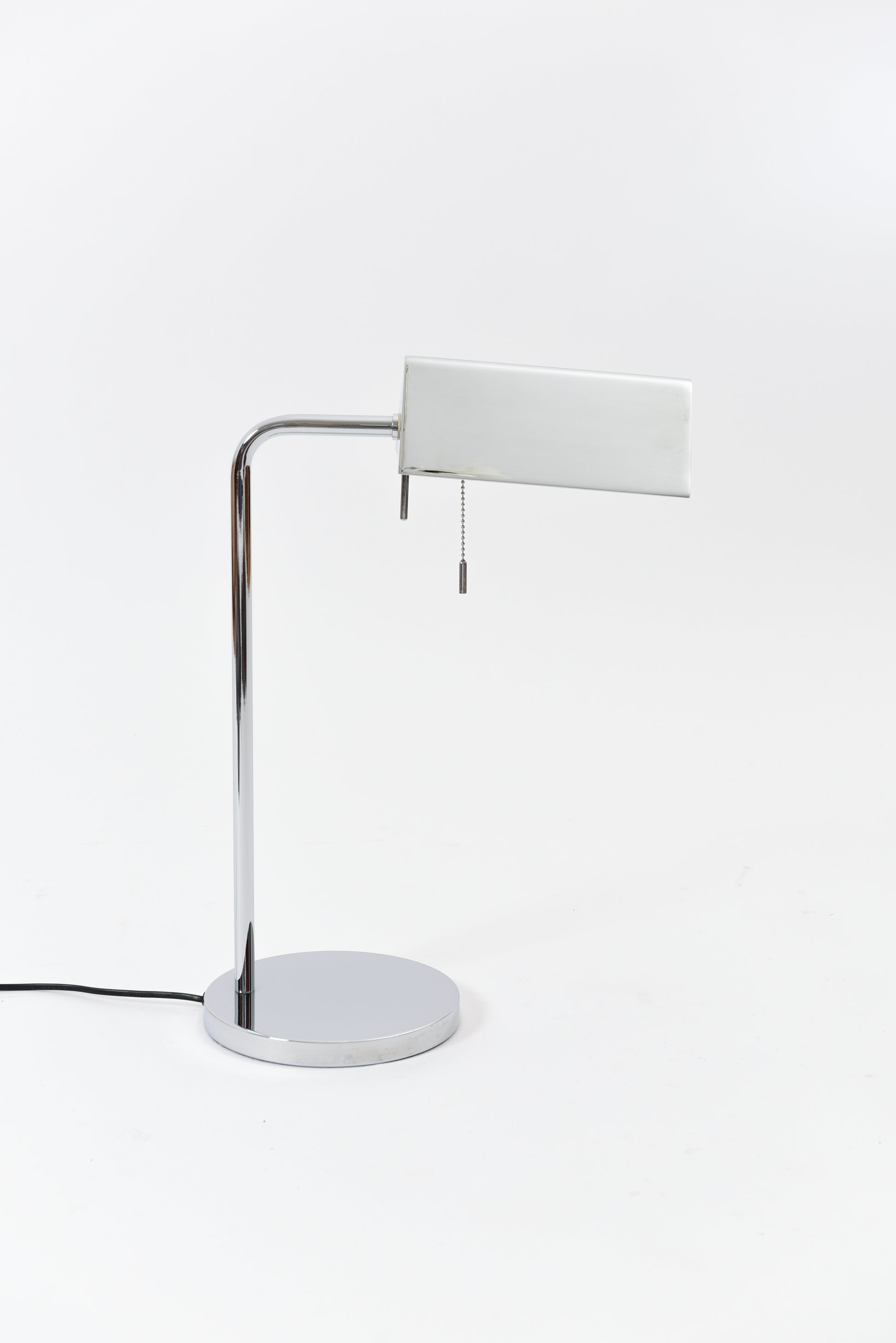 Iluminați-vă spațiul cu această lampă de birou cromată, un tribut strălucitor adus stilului mid century. Designul său elegant, curbat adaugă o notă clasică oricărui birou sau noptieră.