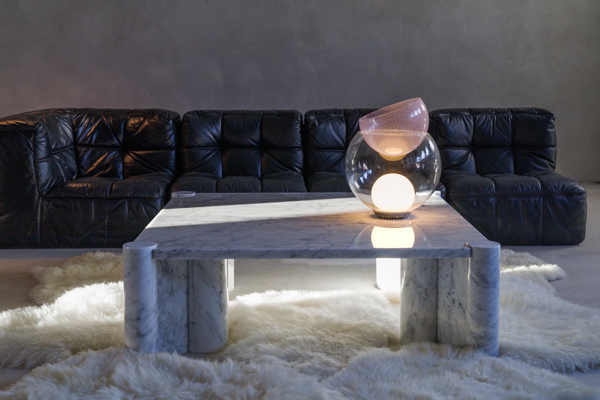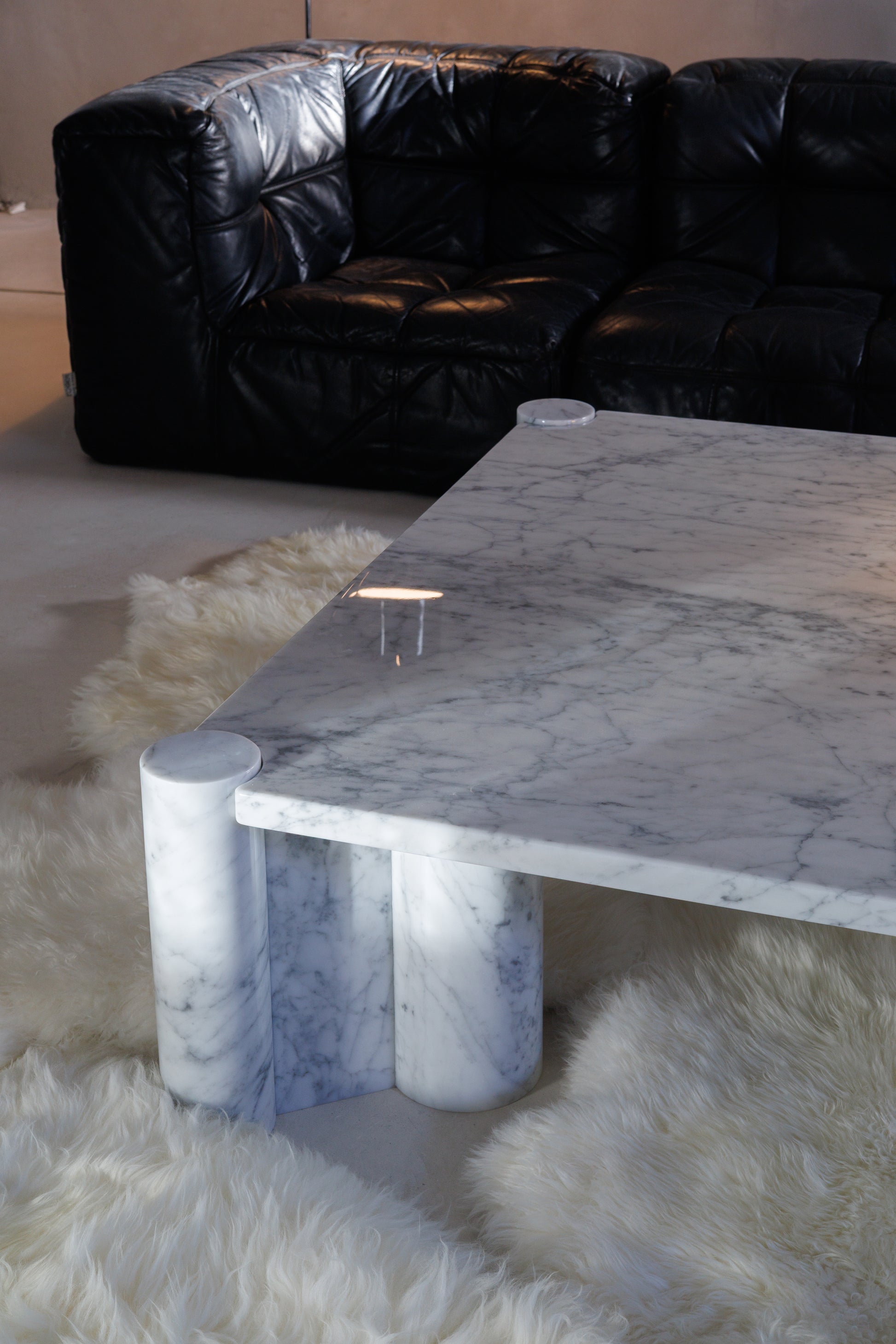 Aulenti’s approach was architectural rather than decorative: four massive, column-like legs support a thick marble top, creating a piece that feels both ancient and modern, a timeless block of pure materiality.