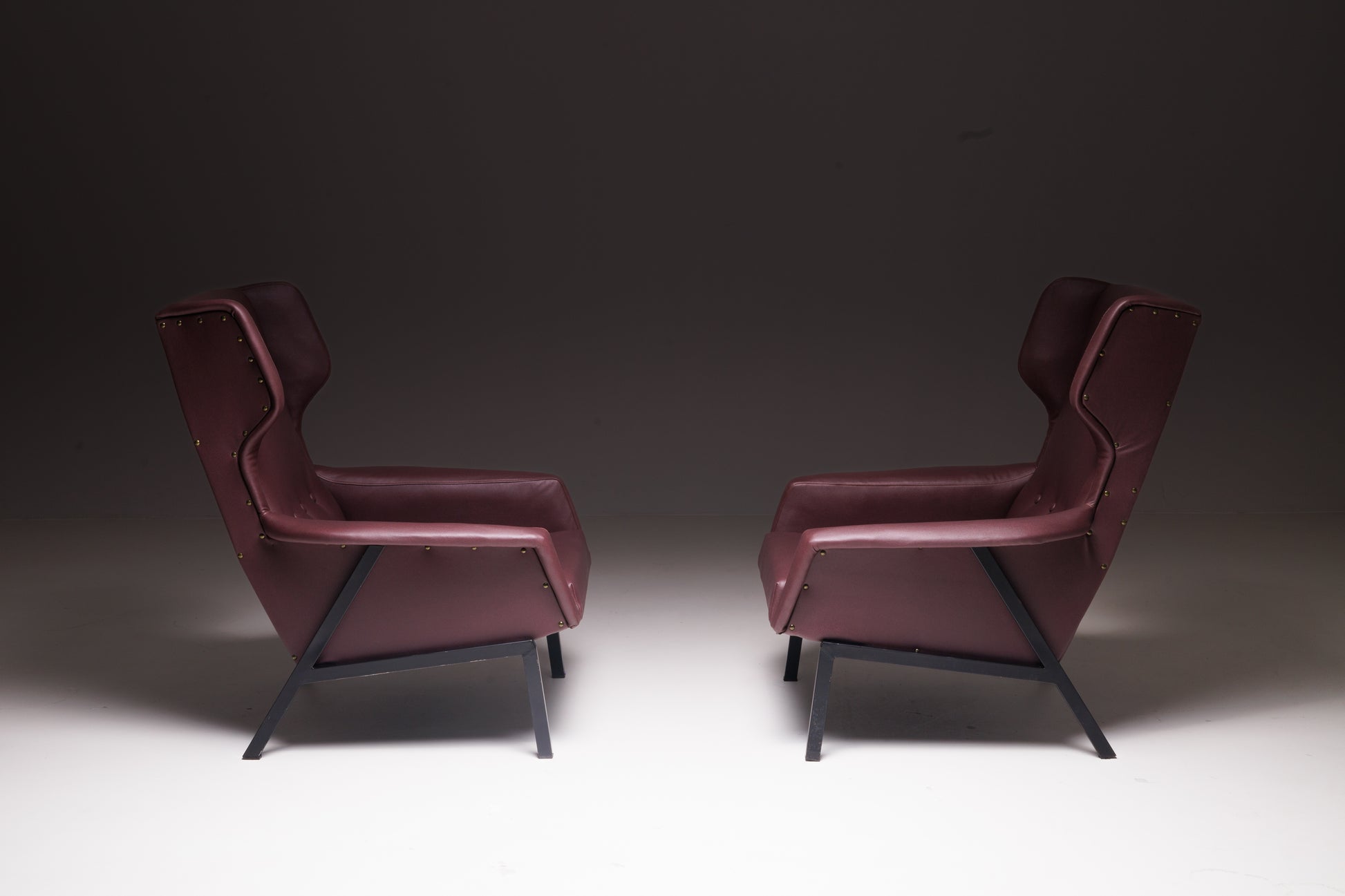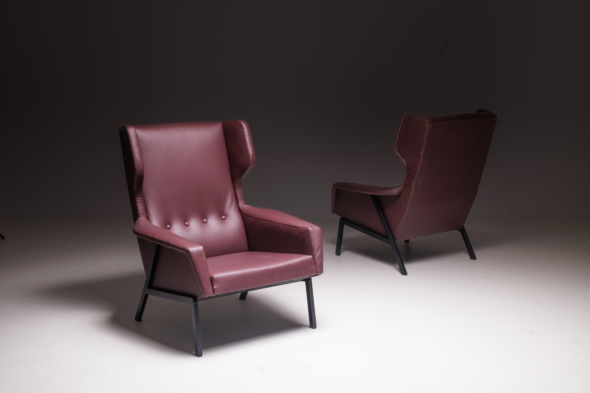Set of 2 Plum Leather Armchairs – Reupholstered
