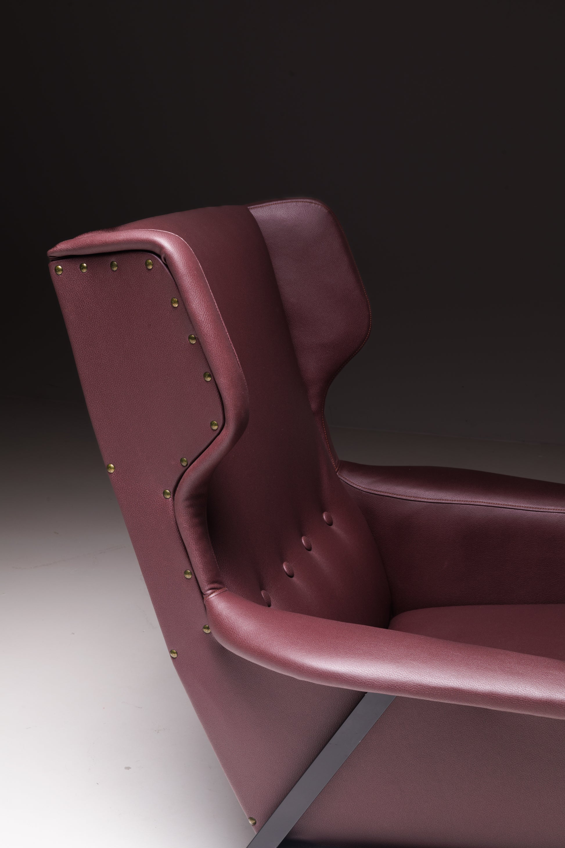 Designed for both style and comfort, these armchairs provide a supportive, enveloping seat, making them perfect for living rooms, offices, or lounge spaces. The durable craftsmanship and high-quality materials ensure lasting appeal, while the deep burgundy hue adds warmth and character to any setting.