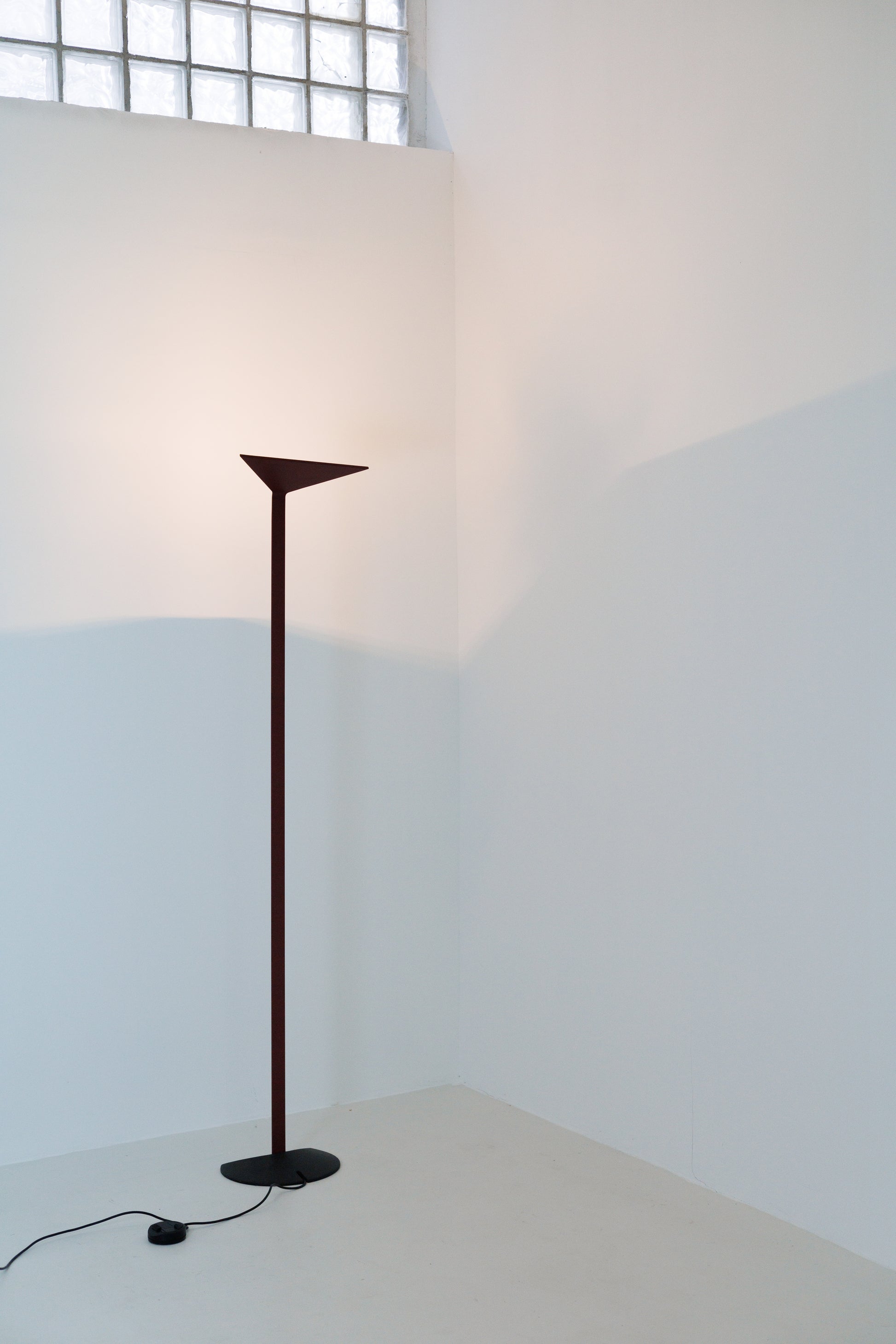 Acest lampadar vintage, proiectat de Mario Barbaglia și Marco Colombo pentru Italiana Luce în anii 1980, este un exemplu bun de design de iluminat italian minimalist.