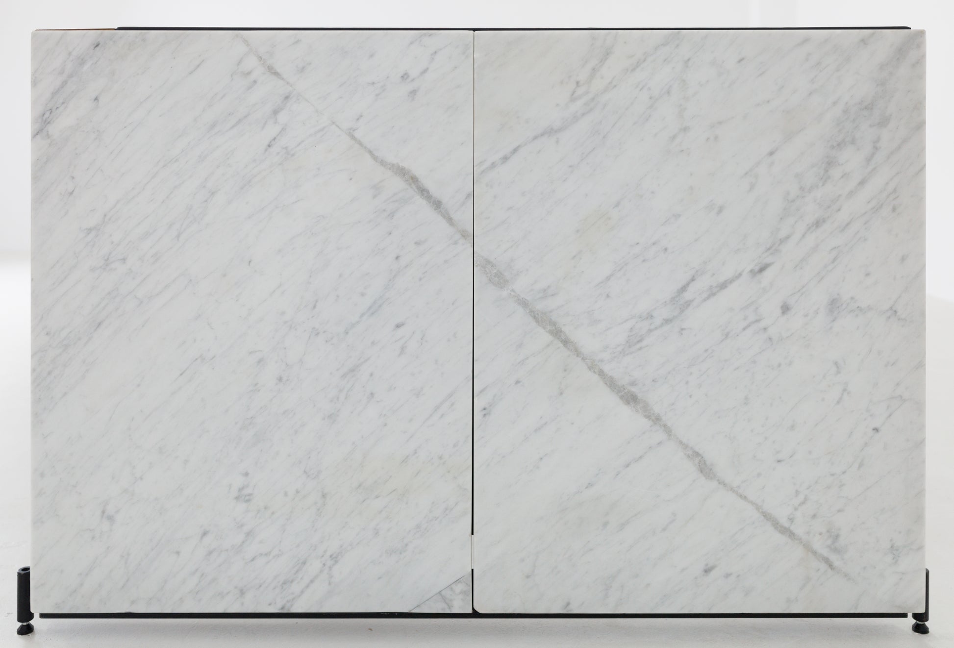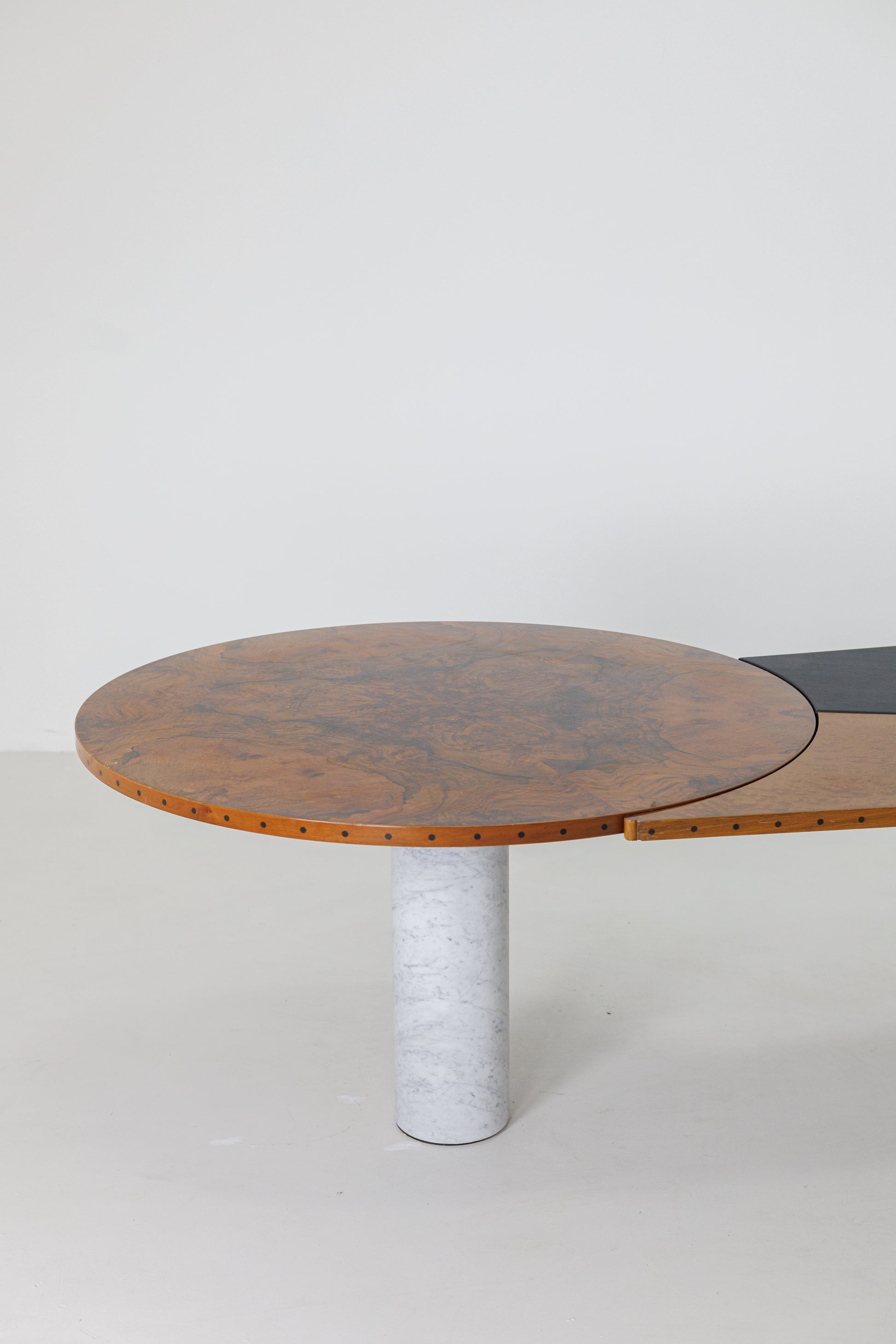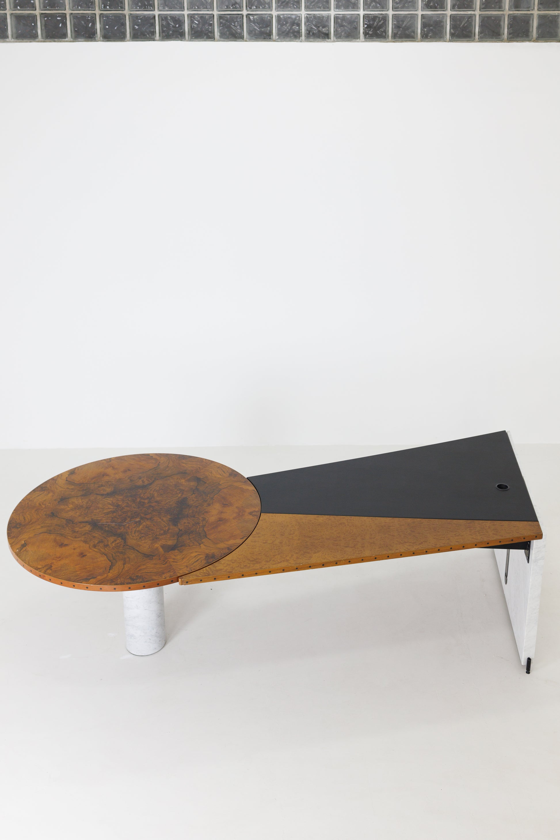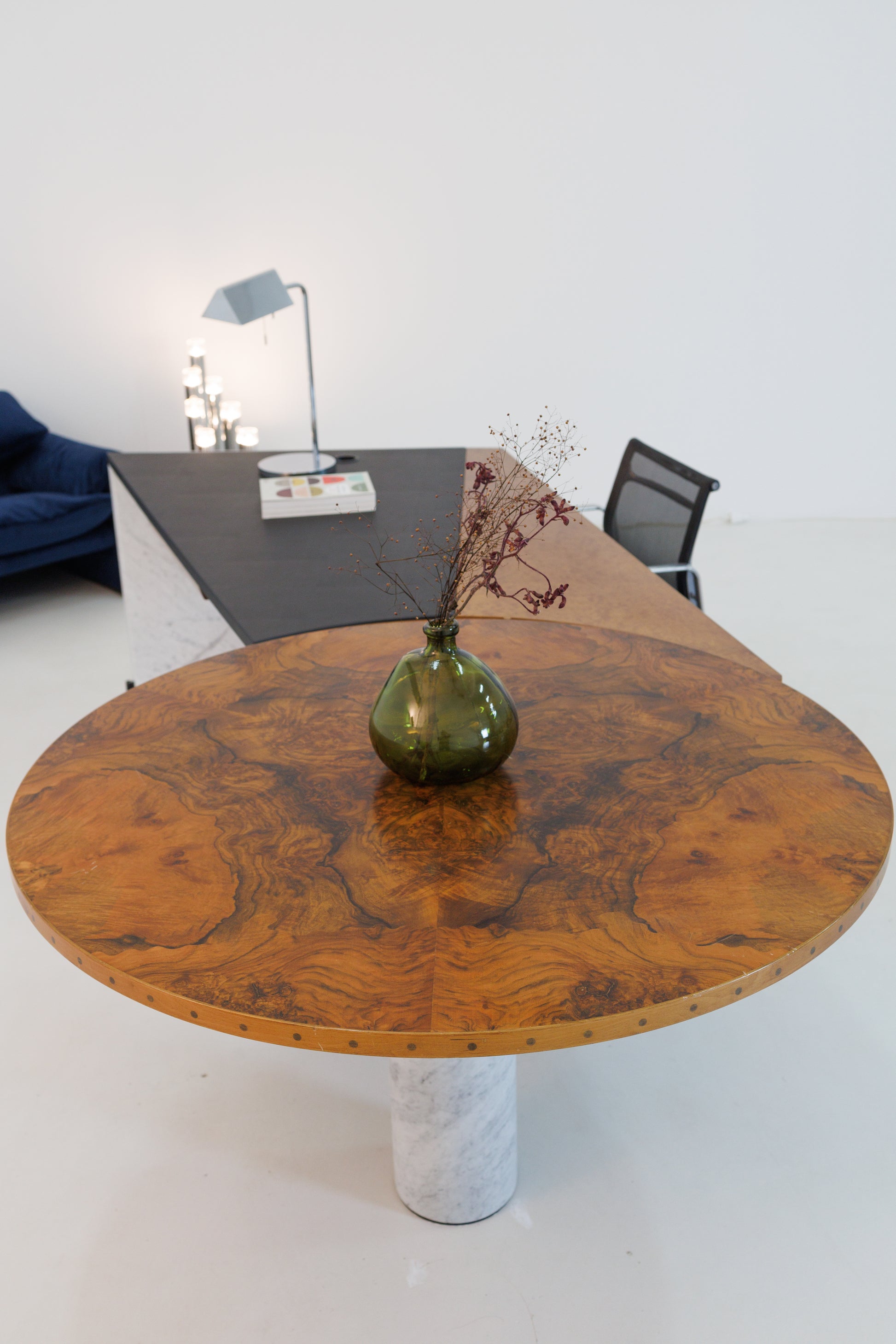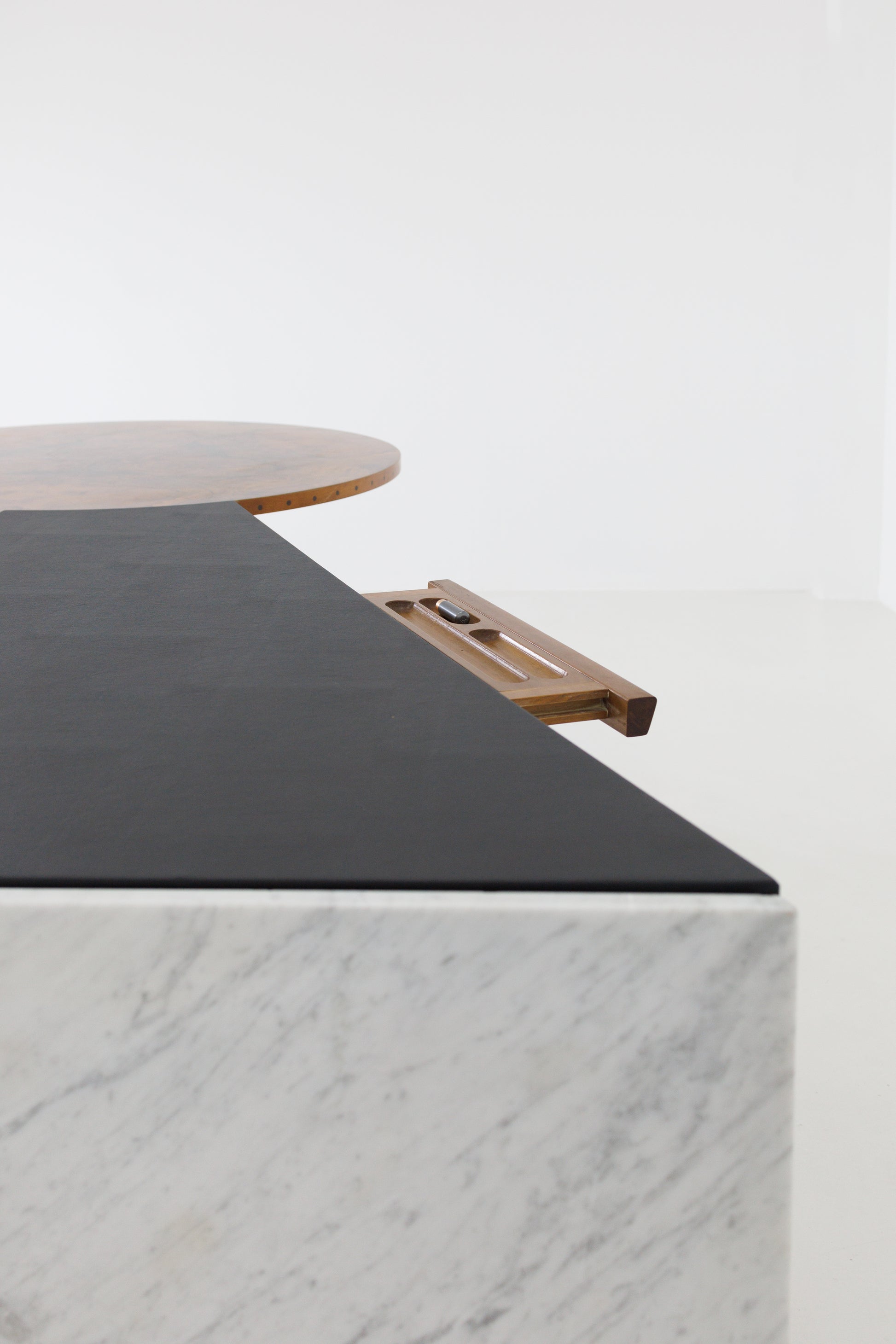 Birou Vintage Unicat din Marmură Carrara și Furnir de Rădăcină de Nuc - Italia, anii 1980